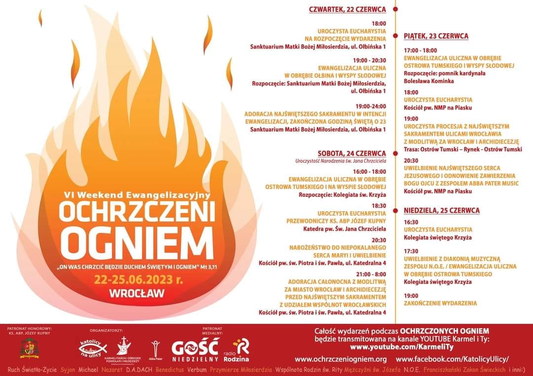 Przez cały ostatni rok wspólnoty modliły się w wielu wrocławskich kościołach w ramach całonocnych czuwań uwielbieniowych „Ogień Dwóch Serc”, aby weekend, który właśnie się zaczyna, był czasem działania Ducha Świętego ku zbudowaniu Jego Kościoła. Jednym z punktów programu będzie uroczysta procesja z Najświętszym Sakramentem ulicami Wrocławia, która w piątek po 19:00 przejdzie przez Ostrów Tumski i Rynek.