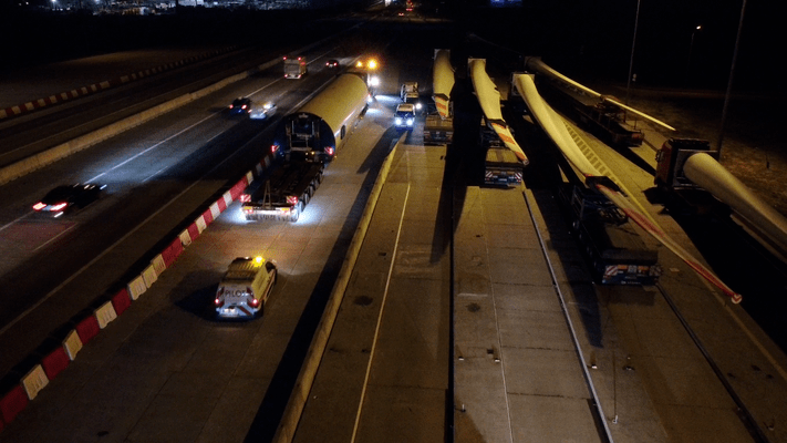 Transport komponentów z portu morskiego w Gdyni wiązał się z dużym wyzwaniem logistycznym. Pojedyncze śmigło wiatraka waży 8,2 tony, ma długość 54 metrów, zaś po zmontowaniu średnica rotatora wynosi około 110 metrów. Natomiast sama gondola, do której montuje się łopaty wirnika waży ok. 70 ton.