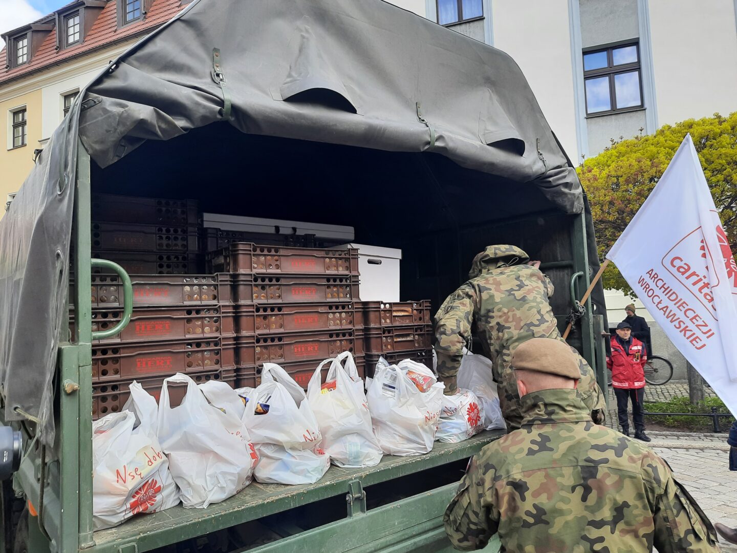 Paczki zostały ufundowane przez abp Józefa Kupnego przy współpracy z Caritas Archidiecezji Wrocławskiej, Bankiem Żywności oraz żołnierzami WOT.