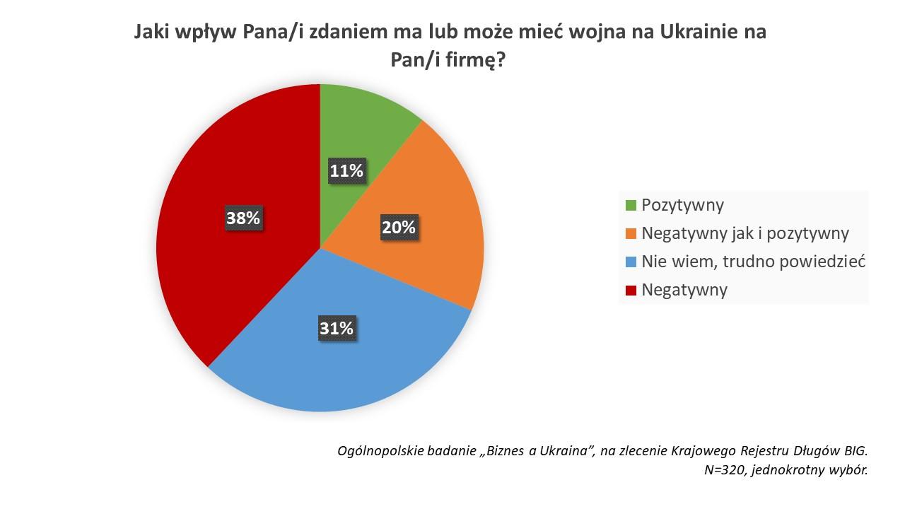 Inaczej jest z pytaniem o wpływ wojny na ich własną działalność. Wtedy aż 31 proc. przedsiębiorców nie potrafi powiedzieć, jakie ona będzie miała dla nich konsekwencje.