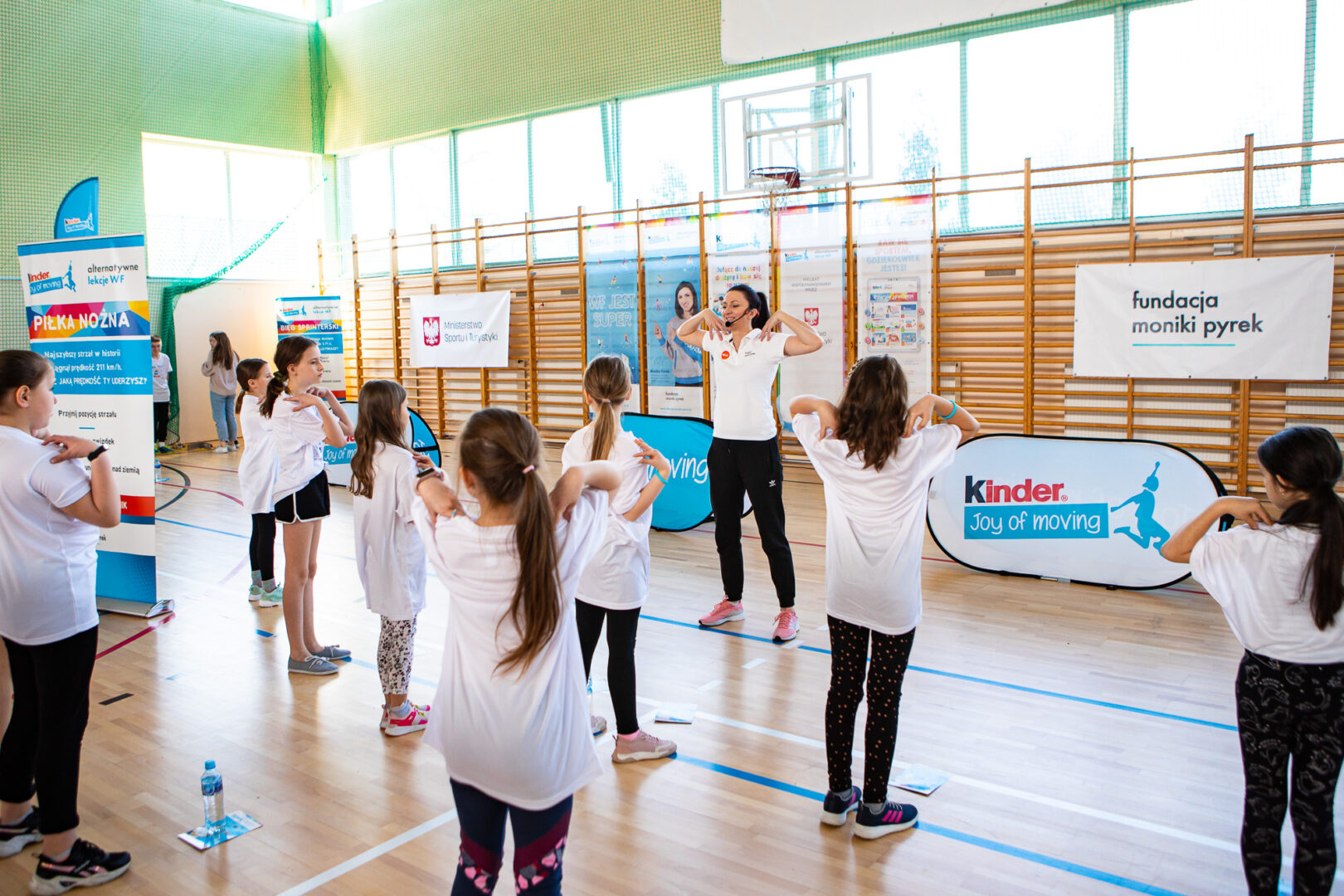Akcja „KINDER Joy of moving Alternatywne lekcje WF” jest częścią programu realizowanego przez Grupę Ferrero, mającego inspirować dzieci i młodzież do podejmowania fizycznej aktywności w celu wykształcenia u nich kultury ruchu. Uczestnicy akcji przez dwie godziny ćwiczą na różnych urządzeniach. To już szósty cykl spotkań organizowanych w szkołach podstawowych przez Fundację Moniki Pyrek.