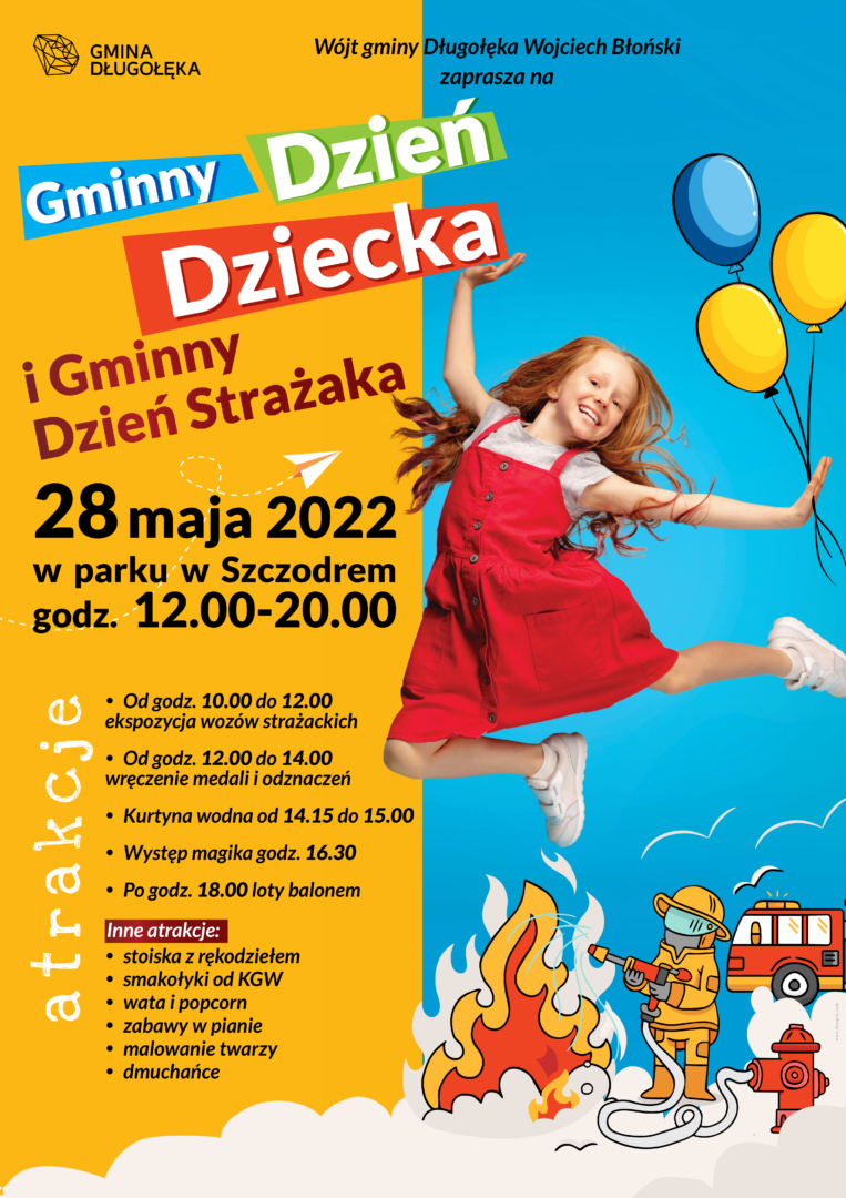 Wójt Gminy Długołęka Wojciech Błoński zaprasza na Gminny Dzień Dziecka i Gminny Dzień Strażaka!