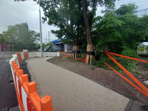 W miejscu dawnych warsztatów kolejowych powstaje 125 metrów kolejnego odcinka pieszo – rowerowej zielonej obwodnicy, która łączy ulice Strzegomską z Robotniczą. To projekt Wrocławskiego Budżetu Obywatelskiego.