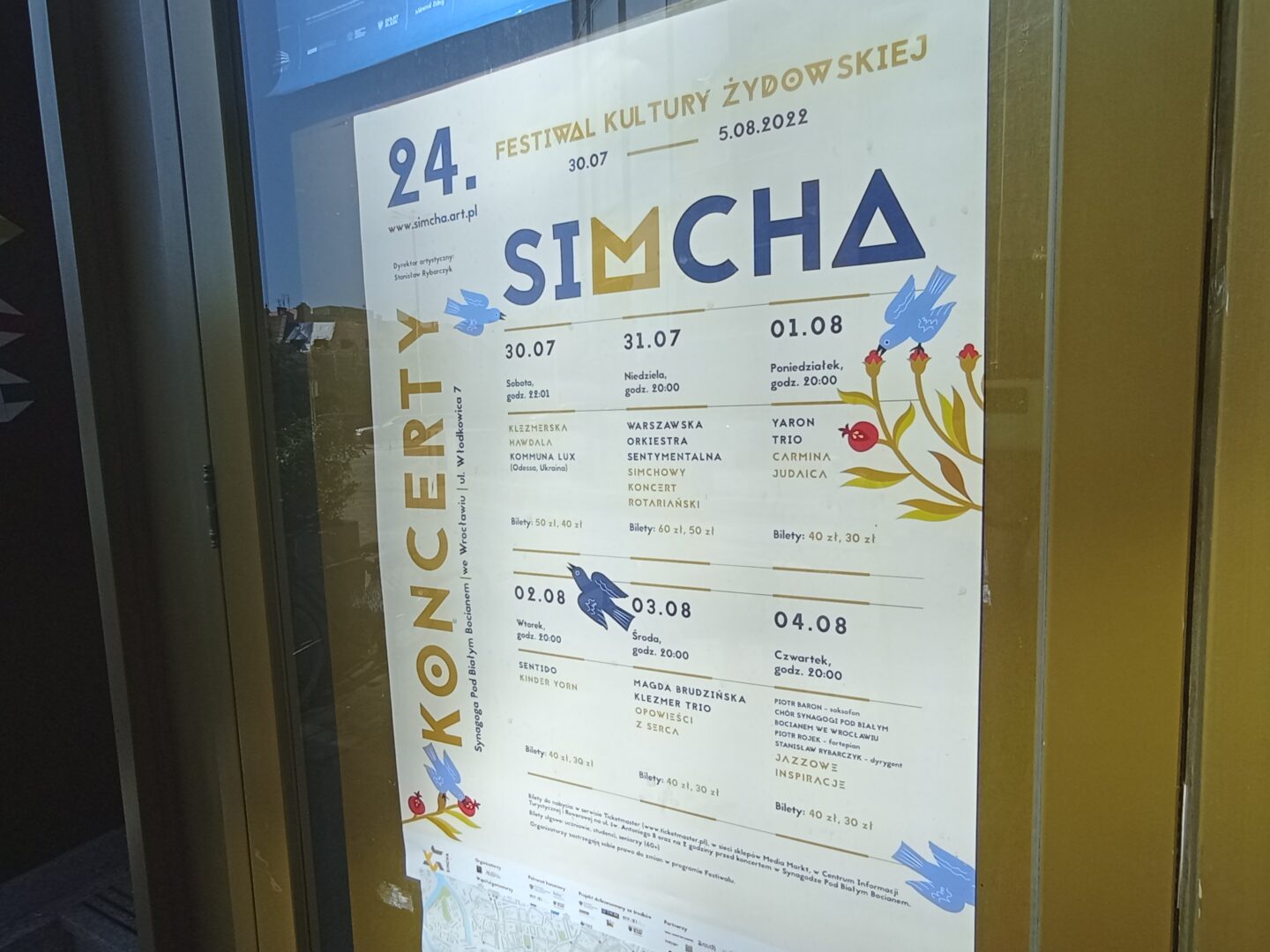 Tegoroczna Simcha rozpocznie się we Wrocławiu 30 lipca i potrwa do do 5 sierpnia. Wydarzenie odbędzie się w Synagodze pod Białym Bocianem oraz innych lokalizacjach Dzielnicy Wzajemnego Szacunku.