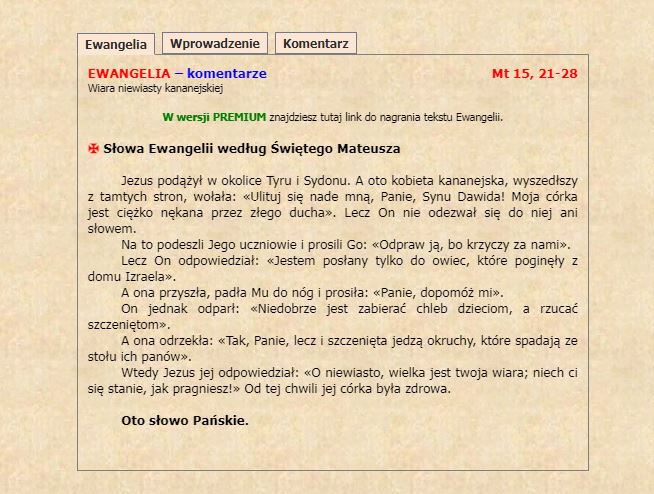 Kobieta kananejska wyprzedziła pragnienie Jezusa, które miał w sercu. Zapragnęła tego, co On chciał później. Jezus chce, abyśmy pragnęli tego samego co On.