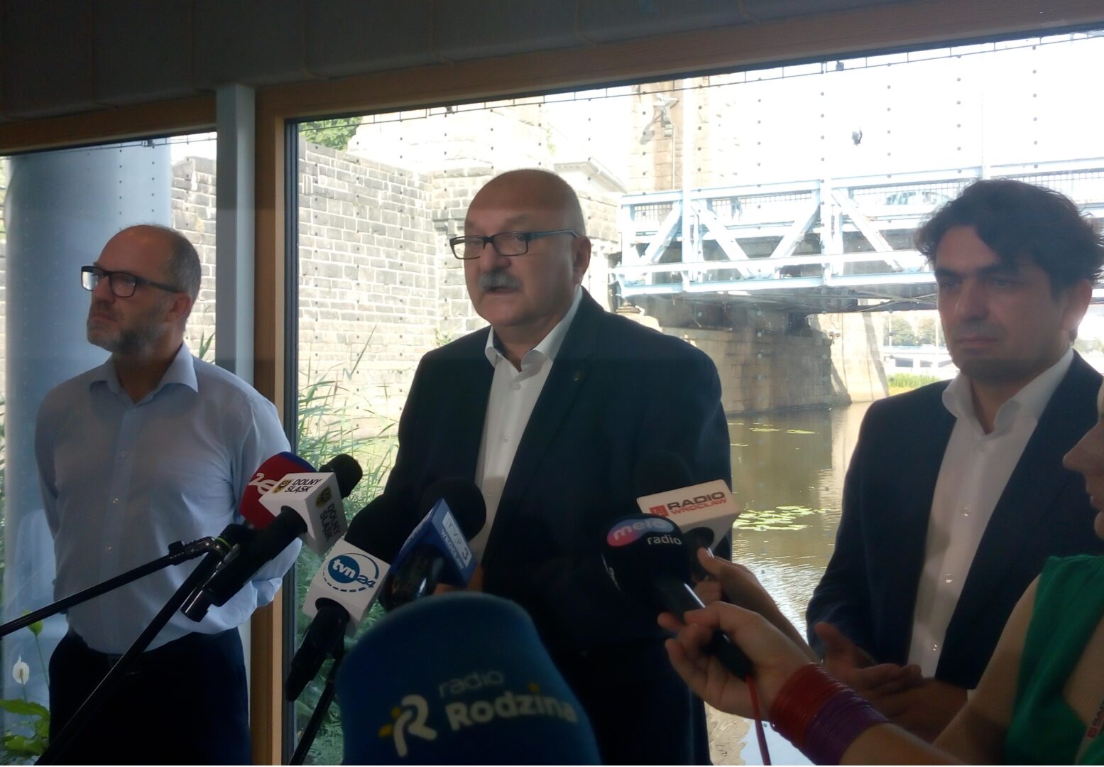 Marszałek Cezary Przybylski oraz Krzysztof Maj z zarządu województwa opowiedzieli o dotychczasowych działaniach podjętych w celu odbudowy ekosystemu Odry i zapobieżenia kolejnym katastrofom.
