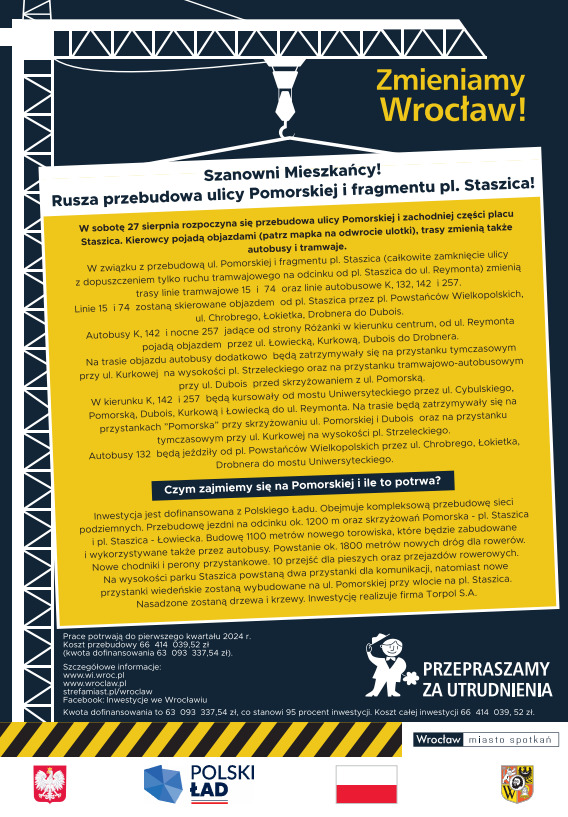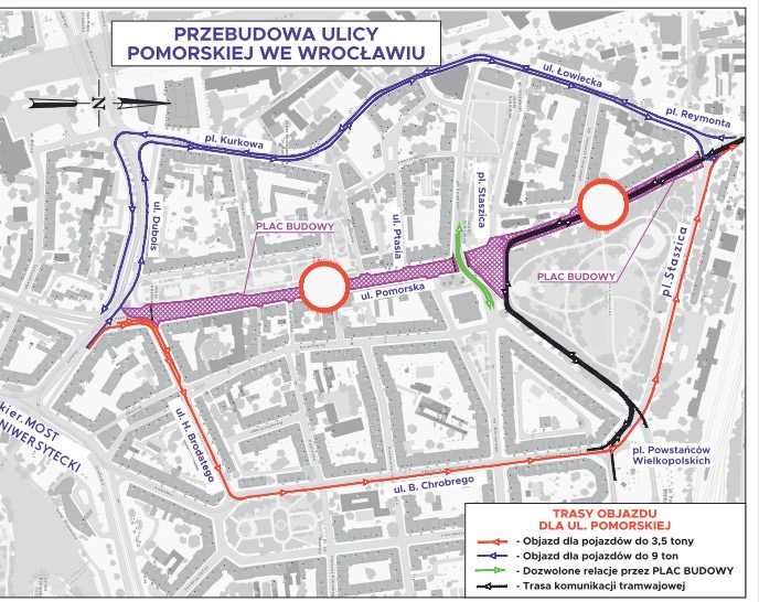 W związku z przebudową ul. Pomorskiej i fragmentu pl. Staszica zmienią trasy linie tramwajowe 15 i 74 oraz linie autobusowe K, 132, 142 i 257. Mówi Adam Więcek z Urzędu Miasta.