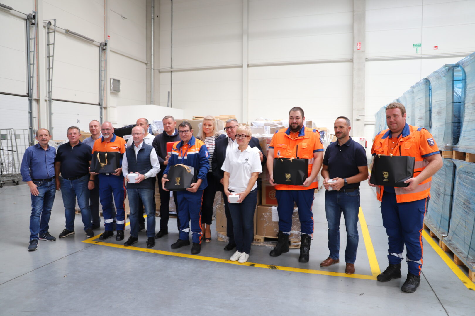 W tym dniu staroście towarzyszyli przedstawiciele polsko-francuskiej Komisji Mieszanej, reprezentujący Powiat Wrocławski: wicestarosta Andrzej Szawan, członek Zarządu Barbara Kosterska oraz Sławomir Hryniewicz, przewodniczący Komisji Promocji, Rozwoju i Współpracy Zagranicznej Rady Powiatu Wrocławskiego. Podczas rozładunku darów nie zabrakło również przewodniczącego Rady Powiatu Wrocławskiego Piotra Chmurzyńskiego, a także członka Zarządu Wiesława Zająca, który z upoważnienia starosty nadzoruje sprawy związane z pobytem uchodźców ukraińskich na terenie powiatu. Dzięki obecności tak licznej reprezentacji Powiatu oraz pracowników starostwa, udało się w szybki i sprawny sposób przeprowadzić rozładunek darów.