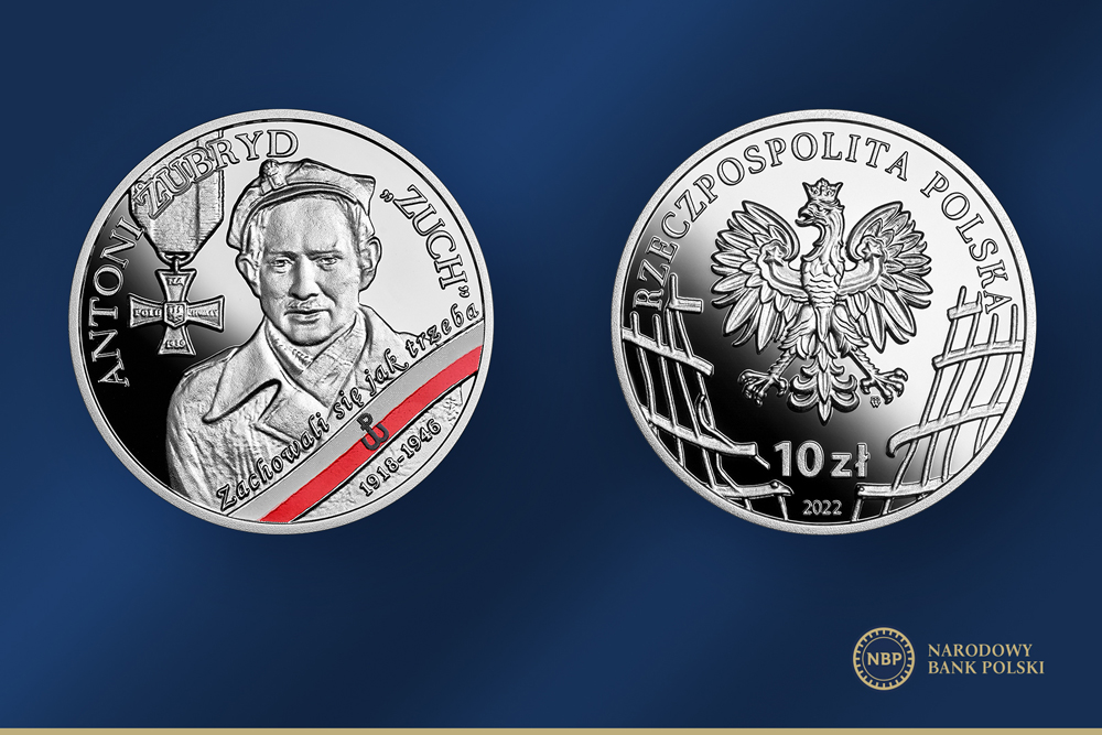 Jest już dostępna srebrna moneta kolekcjonerska z serii „Wyklęci przez komunistów żołnierze niezłomni” – Antoni Żubryd „Zuch”. Moneta ma nominał 10 zł i została wyemitowana w nakładzie do 10 tys. sztuk.