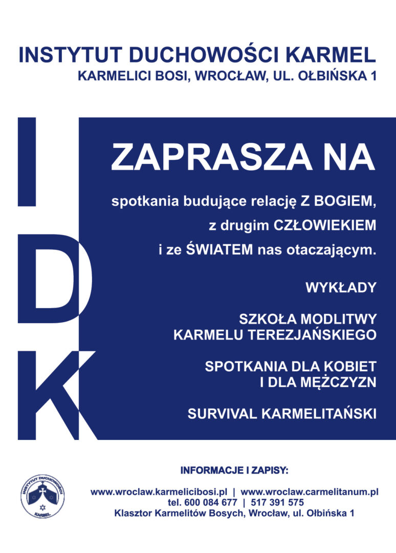 Pierwszy wykład w tym cyklu nosi tytuł „Św. Jan od Krzyża – wolni, by kochać”. Zapraszamy już dziś w imieniu dyrektora Instytutu, ojca Antoniego Rachmajdy.