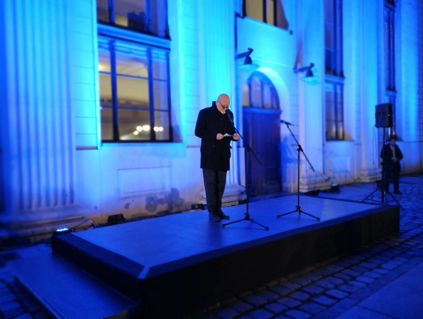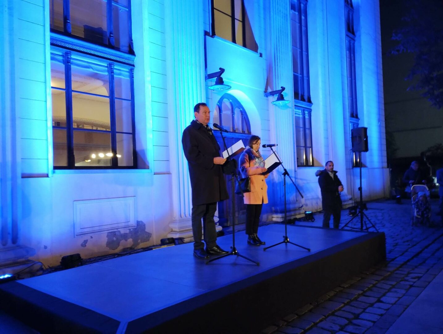 Na dziedzińcu Synagogi pod Białym Bocianem odbyło się przemówienie Ambasadora Izraela, doktora Yacova Livne. Ambasador zwrócił uwagę na historię tragicznych wydarzeń i ich przyczyny.