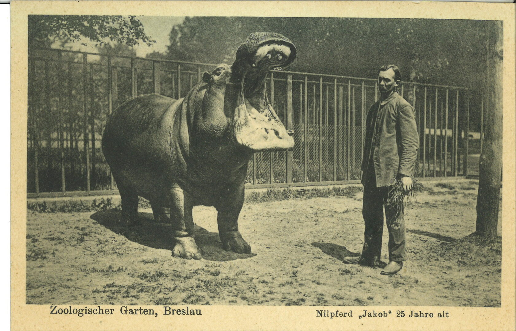 To właśnie na trawniku pomiędzy Małym Pawilonem Drapieżców, Słoniarnią i Ptaszarnią, we wrocławskim zoo, można było oglądać pokazy etnograficzne. Tak zwane Völkerschauen, czyli pokazy ludów odbywały się na terenie Breslauer Zoologischer Garten 23 razy w latach 1876-1930, najczęściej otwierały sezon letni i trwały kilka tygodni. Organizacja pokazów przypadła na okres sprawowania funkcji czterech dyrektorów: dr. Franza Schlegela (1864-1882), Hermanna Stechmanna (1882-1900), Friedricha Grabowskiego (1901-1929) oraz Hansa Honigmanna (1929-1934).* Odnaleziony album z pocztówkami jest największym obecnie nam znanym zbiorem dokumentującym pokazy z lat 1904-1914.