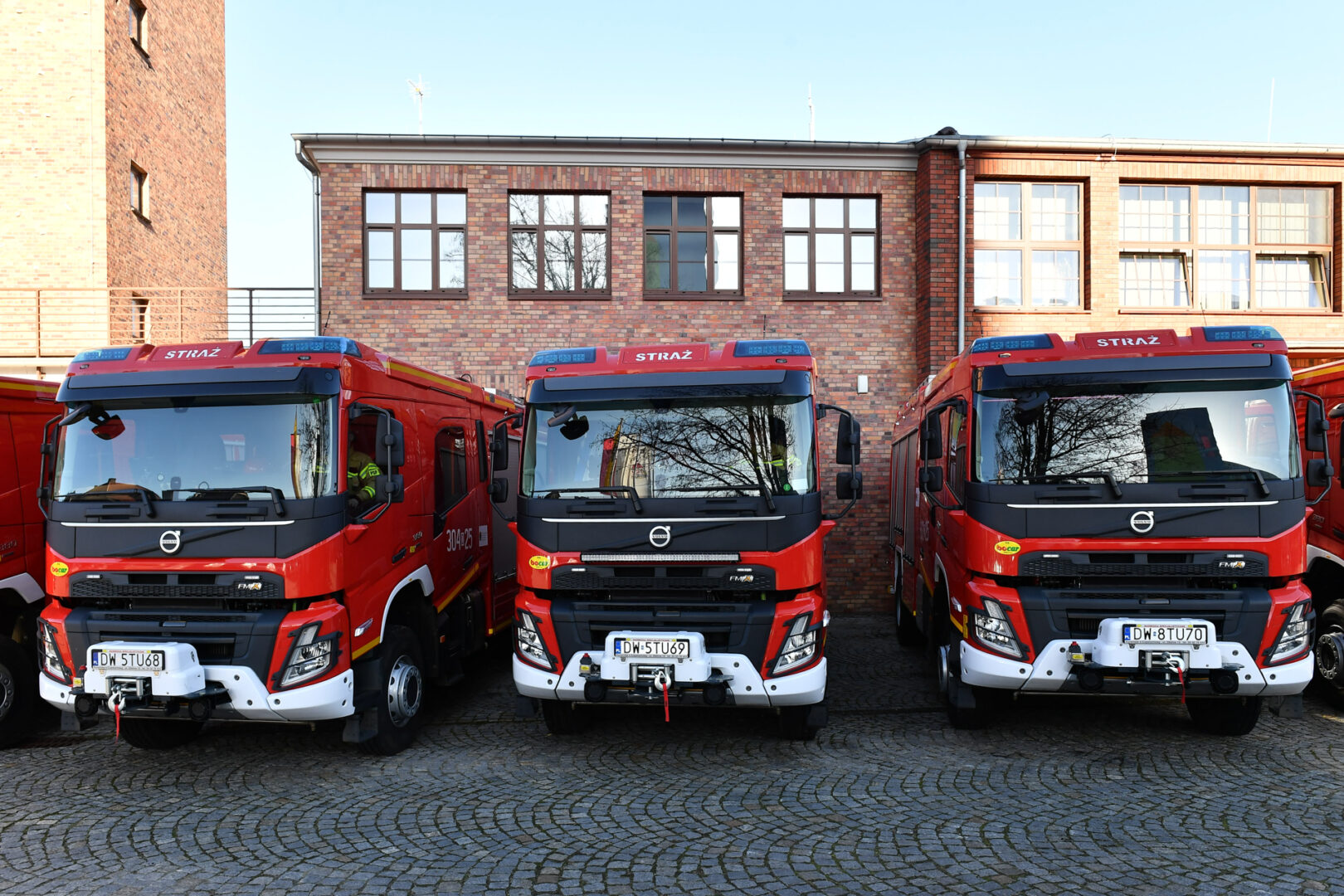 W ubiegłym roku Wrocław dofinansował w kwocie 500 000 zł zakup trzech samochodów dla KMPSP we Wrocławiu. To ciężki samochód specjalistyczny pożarniczy i ratowniczo-gaśniczy z napędem 4×4 VOLVO VTC3R oraz dwa mniejsze wozy strażackie z napędem 4×2.
