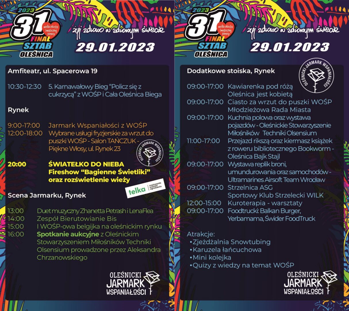 Oleśnica zaprasza na wyjątkowy jarmark, gramy z Wielką Orkiestrą Świątecznej Pomocy. W niedzielę, 29 stycznia odbędą się licytacje, atrakcje i smaczne degustacje. Na regionalnych stoiskach będzie można kupić wszystko z czego słynie miasto Oleśnica.