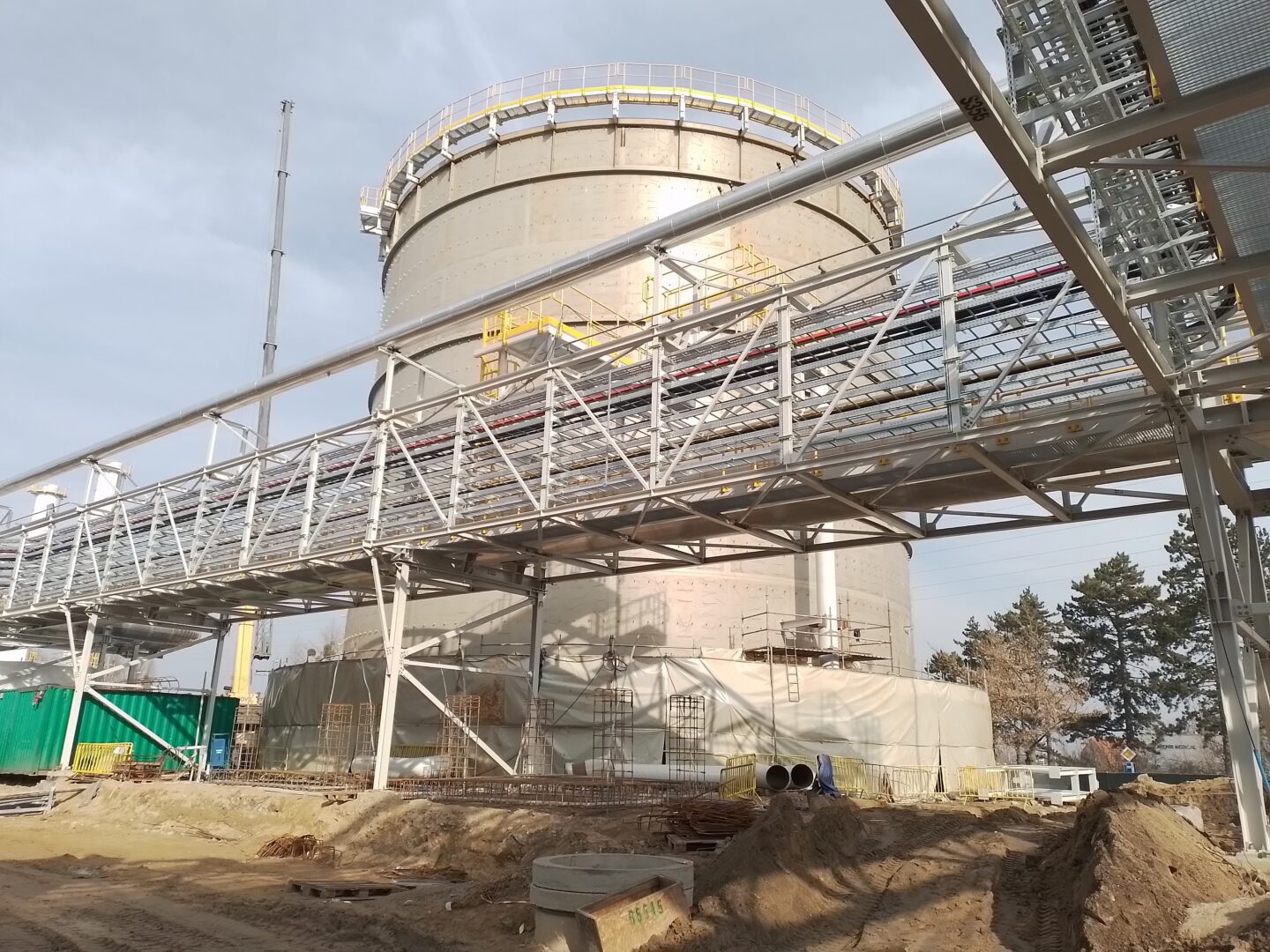 Wyraźnie widoczna jest już konstrukcja akumulatora ciepła, który w nowej elektrociepłowni będzie odpowiadał za stabilizację obciążenia źródeł ciepła przy zmiennym zapotrzebowaniu oraz za pokrywanie chwilowego szczytowego zapotrzebowania na ciepło.