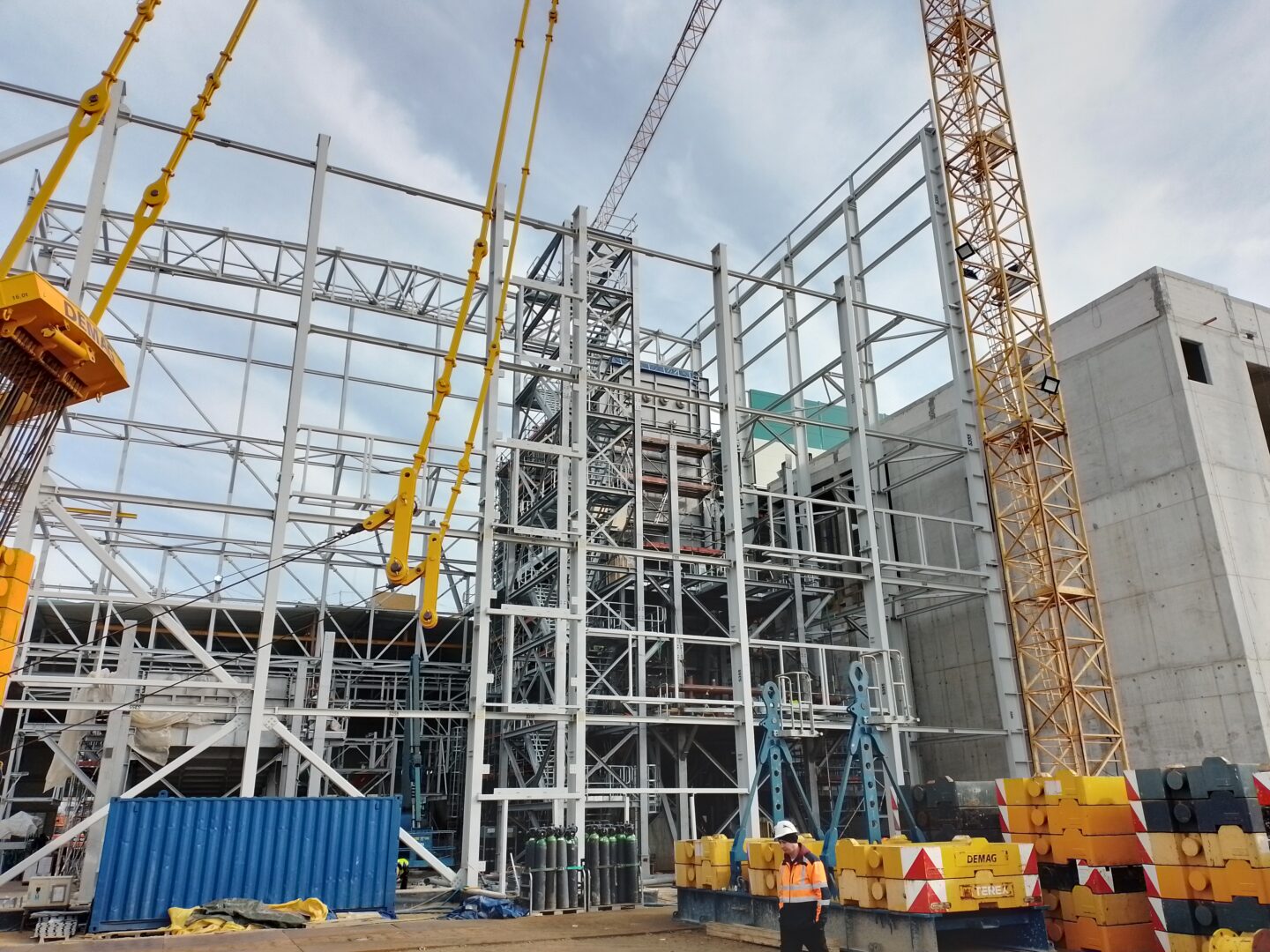 Równolegle z transportem elementów prowadzony jest montaż kotłów odzysknicowych na specjalnych stalowych konstrukcjach wsporczych. Wykorzystywany jest do tego specjalistyczny żuraw o udźwigu do 650 ton. Pierwszy z kotłów wzniósł się już na wysokość ponad 20 m, drugi ma ok. 8 m. Ostatnim modułem będzie komin kotła, który zwieńczy całą konstrukcję na wysokości 40 m. Montaż kotłów odzysknicowych zakończy się w lipcu br.