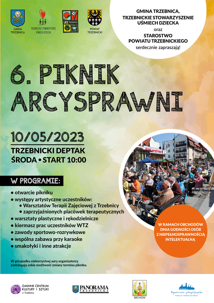 W środę, 10 maja o godz. 10.00 na trzebnickim deptaku, z okazji Dnia Godności Osób Niepełnosprawnych, odbędzie się Piknik arcySPRAWNI, zorganizowany przez Trzebnickie Stowarzyszenie „Uśmiech Dziecka”, Warsztaty Terapii Zajęciowej w Trzebnicy oraz Gminę Trzebnica.