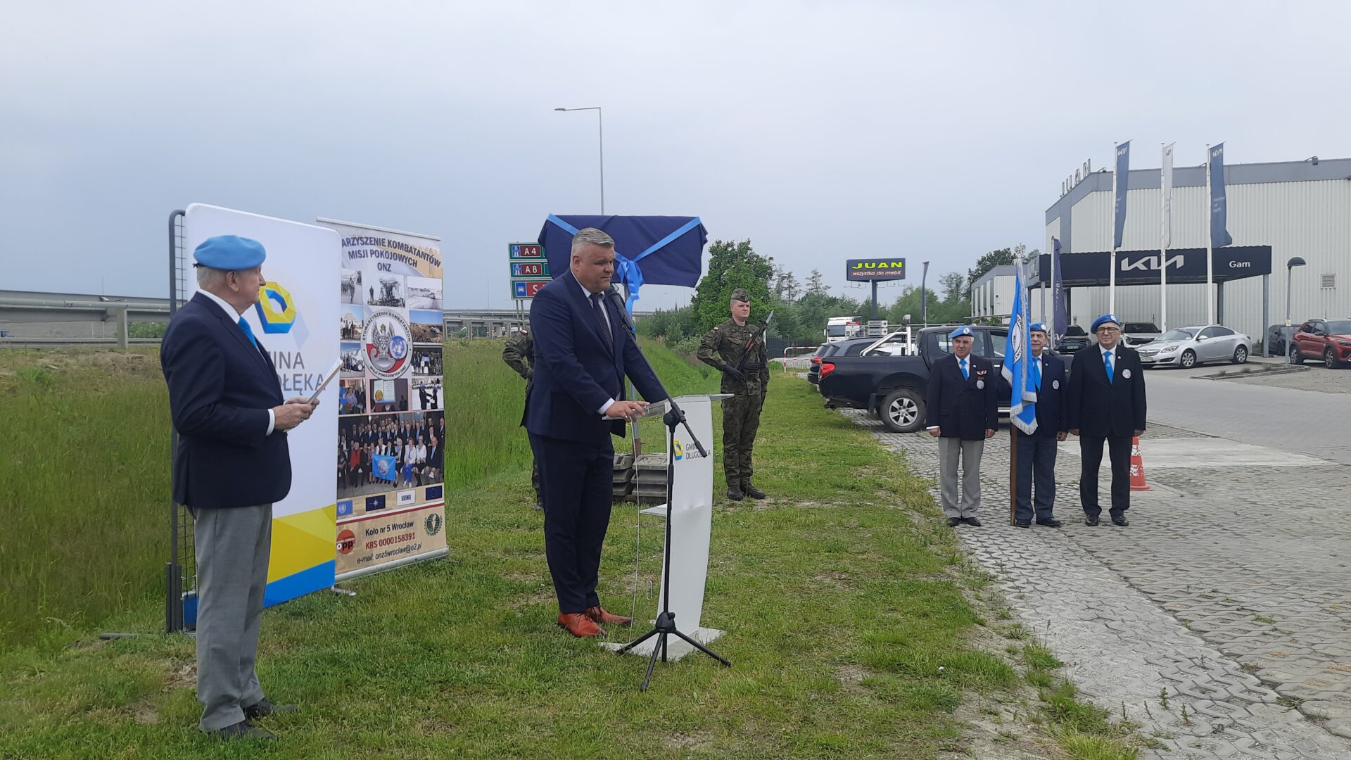 W gminie Długołęka odbyło się uroczyste nadanie węzłowi drogowemu imienia „Węzeł im. Żołnierzy ONZ”. Wójt Wojciech Błoński podkreślił, że w taki sposób możemy podziękować żołnierzom, którzy brali udział w misjach pokojowych ONZ. Wśród gości byli weterani ze Stowarzyszenia Kombatantów Misji Pokojowych ONZ.