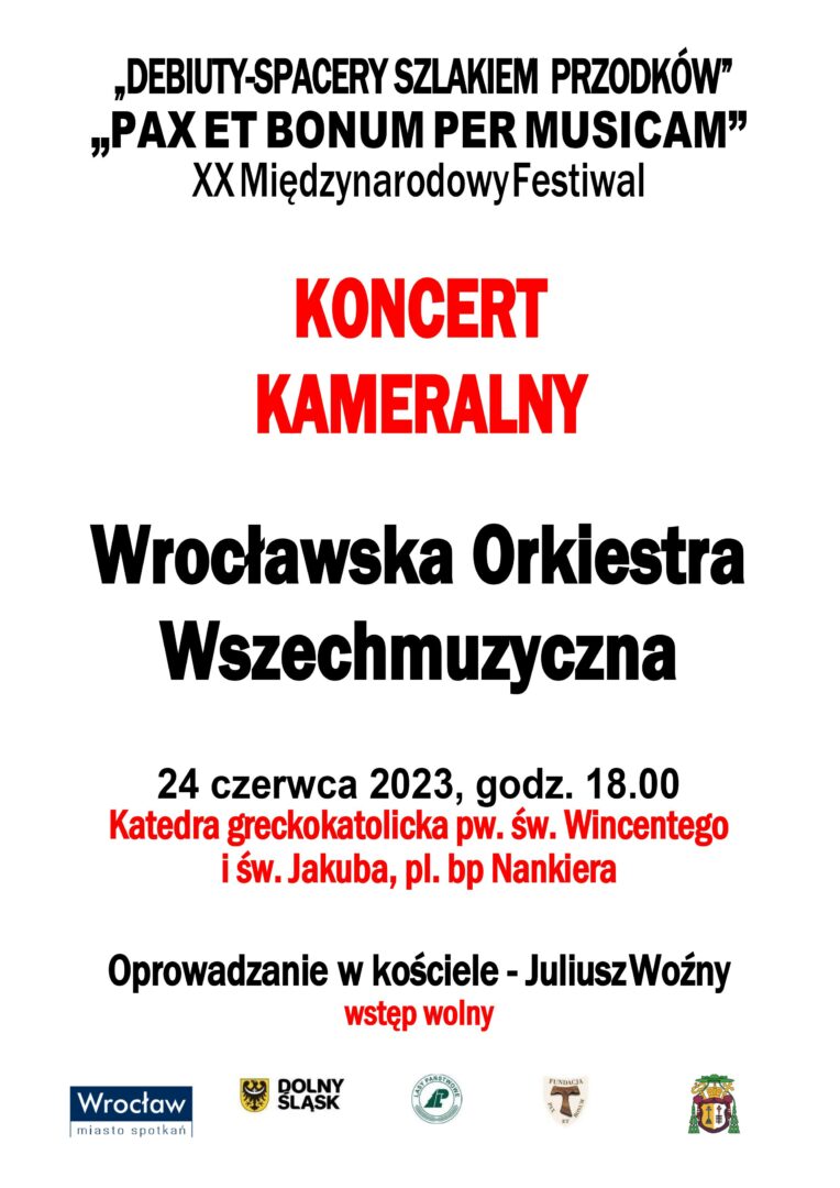 Wrocławska Orkiestra Wszechmuzyczna zaprezentuje się w sobotę 24.06. 2023 r. o godz. 18.00 w Katedrze św. Wincentego i św. Jakuba Kościoła Greckokatolickiego, pl. Bp. Nankiera 15 we Wrocławiu. Wstęp wolny, zapraszamy!