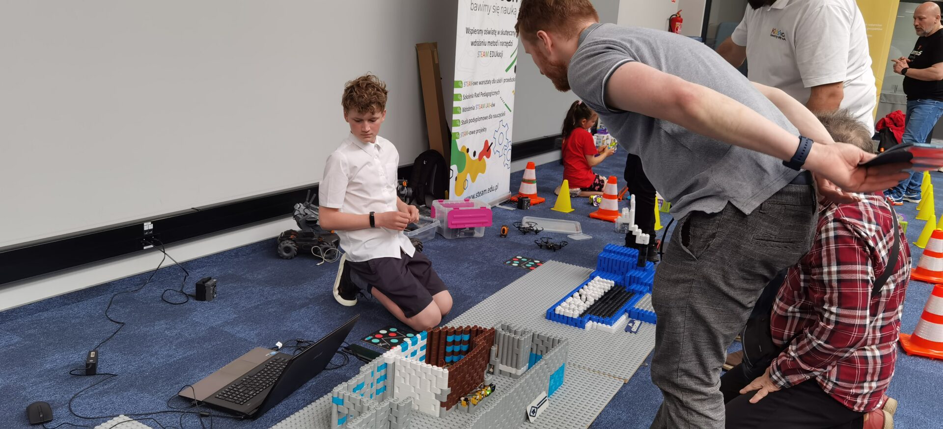 Na piętrze budynku Centrum Szkoleniowego INNOVATION PARK zorganizowano przestrzeń na potrzeby warsztatów z robotyki. Szczepan Dębowski, nauczyciel ze Szkoły Podstawowej nr 2 w Wałbrzychu wyjaśnił nam, jakie korzyści uzyskują uczniowie, którzy korzystają z zajęć w formie oferowanej w Centrum Szkoleniowym WSSE.