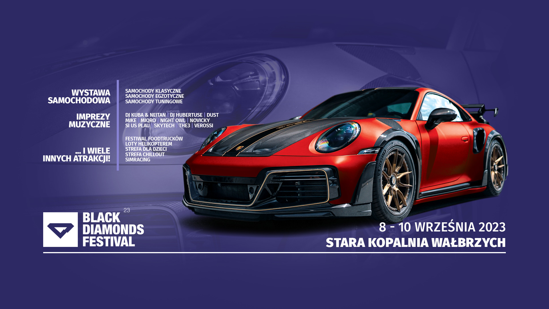 Luksusowe modele oraz sportowe i klasyczne samochody z całego świata będzie można podziwiać już 8-10 września 2023 roku w Wałbrzychu. Klimatyczna “Stara Kopalnia” stanie się też centrum wrażeń dla miłośników muzyki elektronicznej i rodzin szukających niezapomnianych atrakcji.