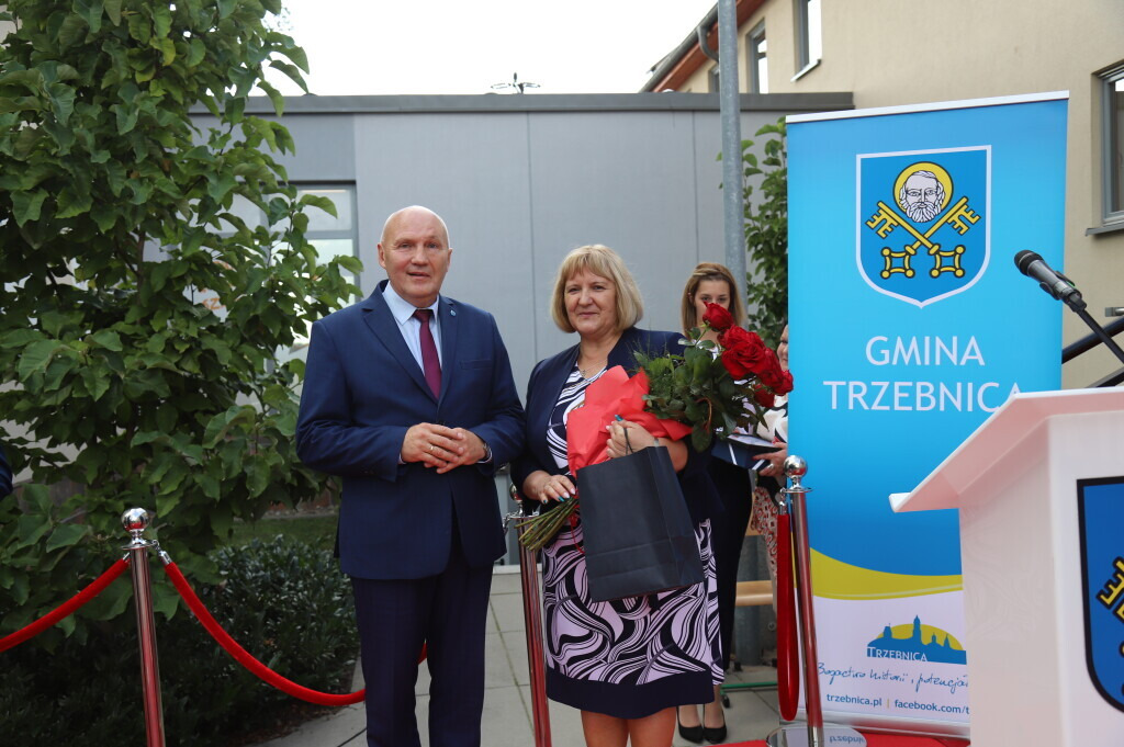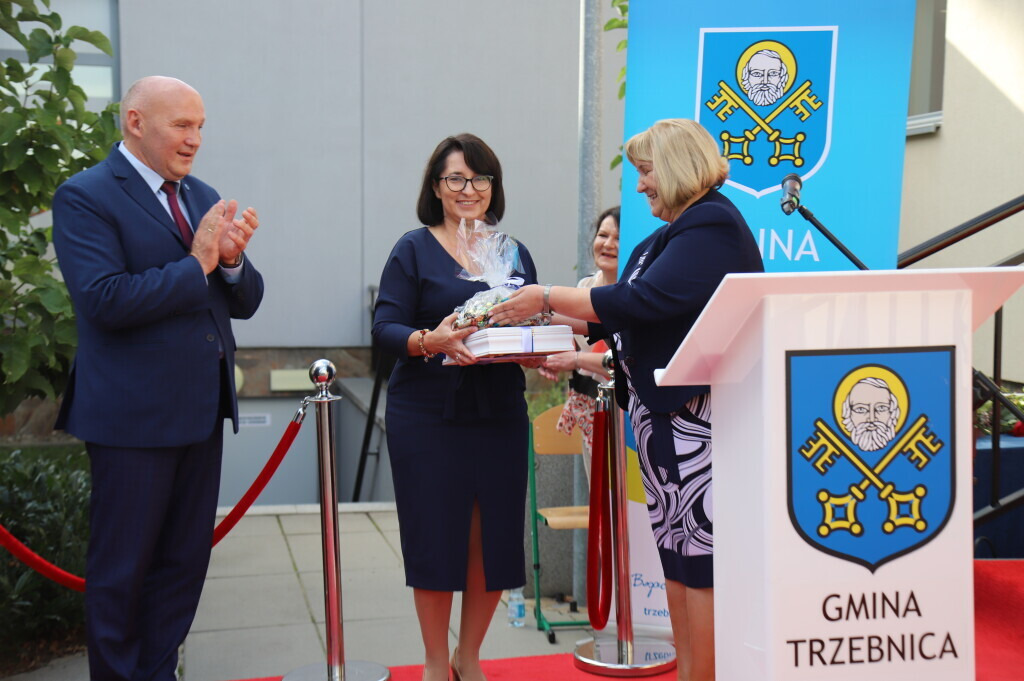 Po tym nastąpił moment symbolicznego przekazania kluczy nowej dyrektor szkoły w Kuźniczysku Dorocie Surówce. – Dziękuję Panie burmistrzu za to wielkie wyróżnienie. Jestem zaszczycona, że to właśnie mnie została powierzona funkcja dyrektora tej nowoczesnej i wspaniałej placówki, która jest wizytówką Gminy Trzebnica i chlubą naszej społeczności lokalnej. Chcę zapewnić, że będę dbała o poszanowanie dotychczasowego dorobku wielu ludzi – podziękowała dyrektor Dorota Surówka.