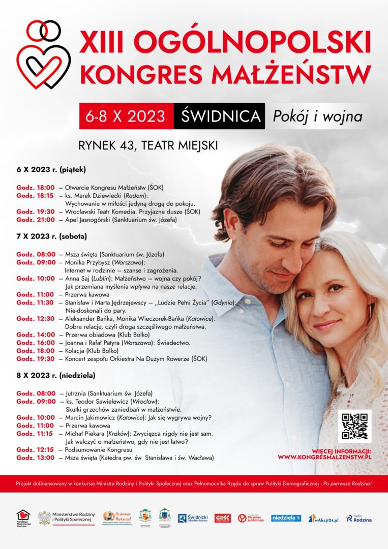XIII Ogólnopolski Kongres Małżeństw otrzymał dofinansowanie z Ministerstwa Rodziny i Polityki Społecznej i Pełnomocnika Rządu do Spraw Polityki Demograficznej w ramach konkursu ” Po Pierwsze Rodzina!”. Szczegółowy plan trzydniowej randki oraz wszystkie prelekcje można znaleźć na stronie internetowej: