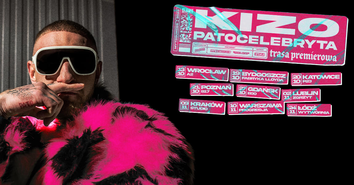 W nawiązaniu do tytułu najnowszego krążka trasę koncertową nazwał Kizo po prostu Patocelebryta Tour. W planach jest aż dziewięć miast. W których z nich będzie można posłuchać zarówno najnowszych numerów Kizo, jak i znanych bangerów? Poniżej mini ściąga: