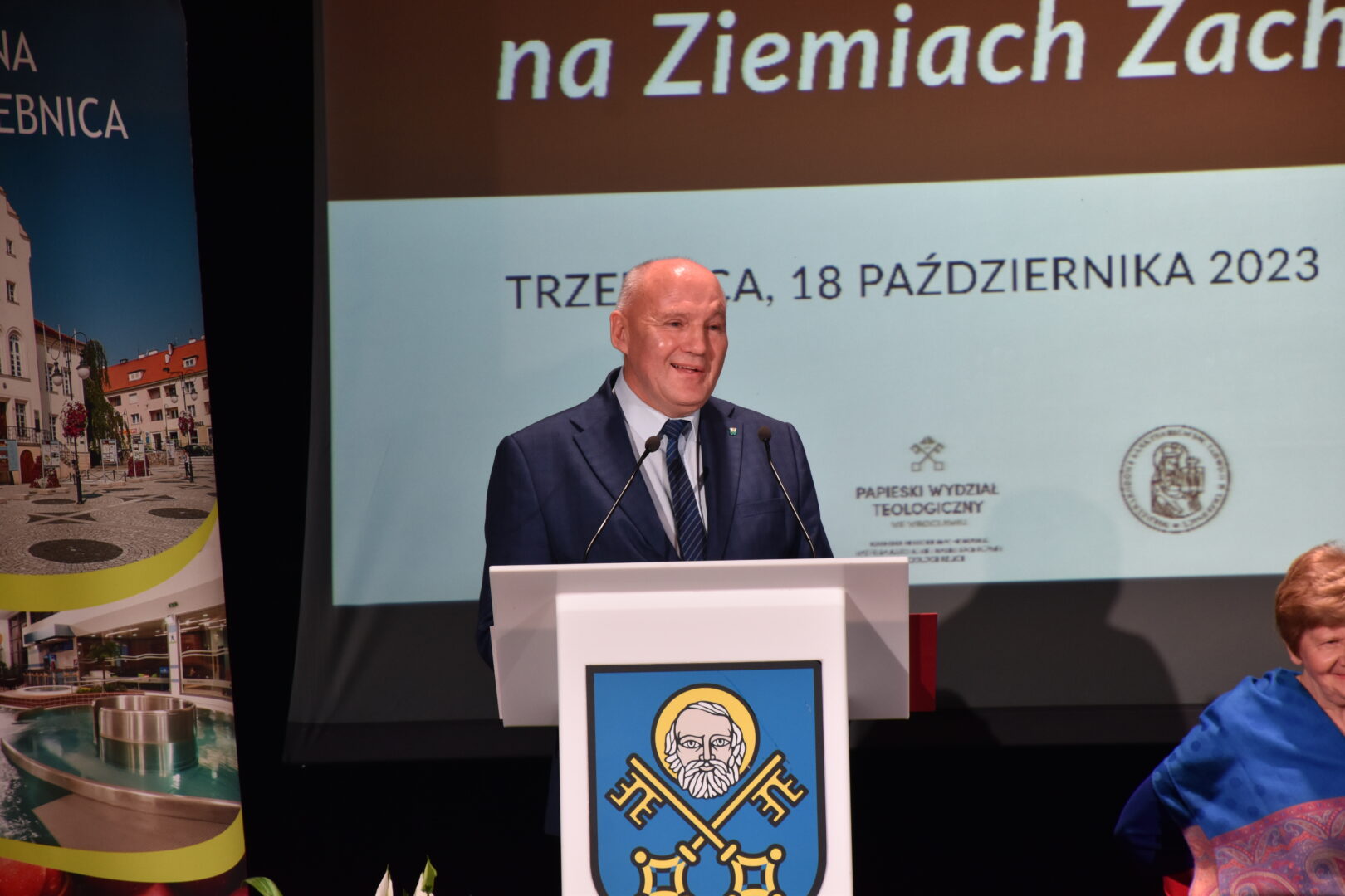 Październik to szczególny czas dla Trzebnicy, bo pielgrzymujemy do św. Jadwigi. Chlubimy się tym, że jest to nasza patronka. Nasza trzebnicka bazylika była świadkiem wielu wydarzeń, a w kontekście konferencji 14 października 1945 roku miał miejsce ingres ks. Karola Milika. W Trzebnicy ks. Milik prosił boga o błogosławieństwo i siły do prowadzenia Archidiecezji Wrocławskiej – mówił burmistrz, życząc owocnych obrad oraz zachęcał do zwiedzania miasta Trzebnicy.