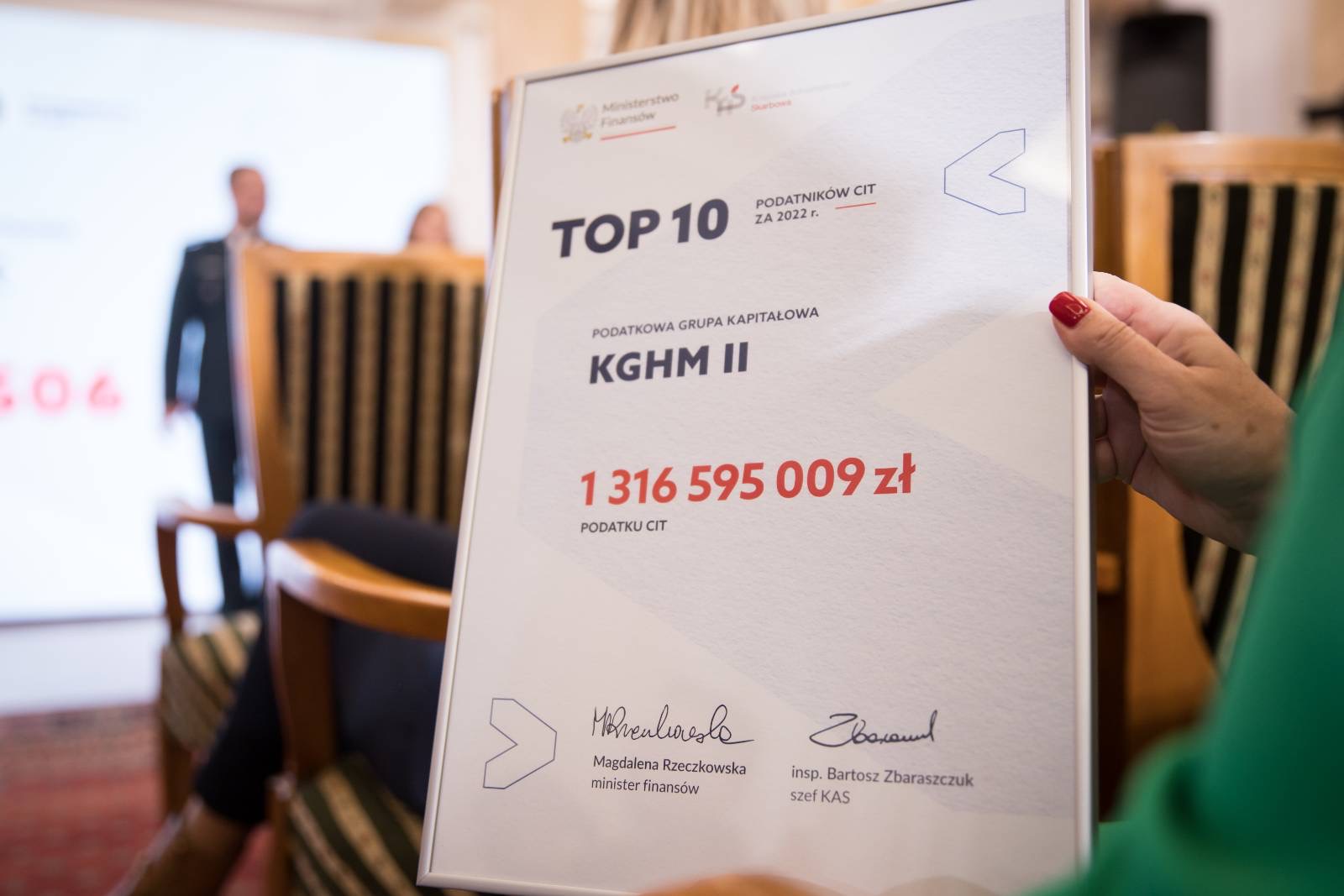 Grupa KGHM od lat znajduje się w czołówce przygotowywanej przez Ministerstwo Finansów listy największych podatników podatku CIT. Resort co roku wyróżnia płatników specjalnymi dyplomami. Polska Miedź płaci podatek dochodowy jako Podatkowa Grupa Kapitałowa KGHM II. Ministerstwo Finansów podkreśla zasługi spółek skarbu państwa dla budżetu Polski, który jest w bardzo dobrym stanie. Od 2015 r. roczne dochody budżetu wzrosły o ponad 100 proc.