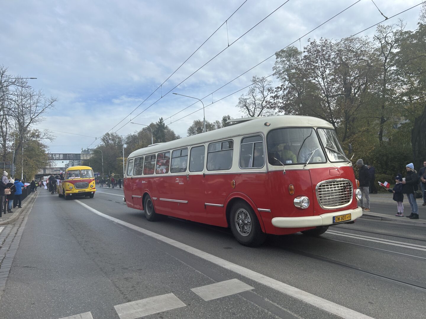 Radosną Paradę Niepodległości poprowadził Jelcz 043 („ogórek”). W wydarzeniu wzięły udział także zabytkowe autobusy Klubu Sympatyków Transportu Miejskiego. O godz. 12.00 odśpiewano wspólnie Mazurka Dąbrowskiego. Seniorzy ze Strefy Trzeciego Wieku zatańczyli tam poloneza.