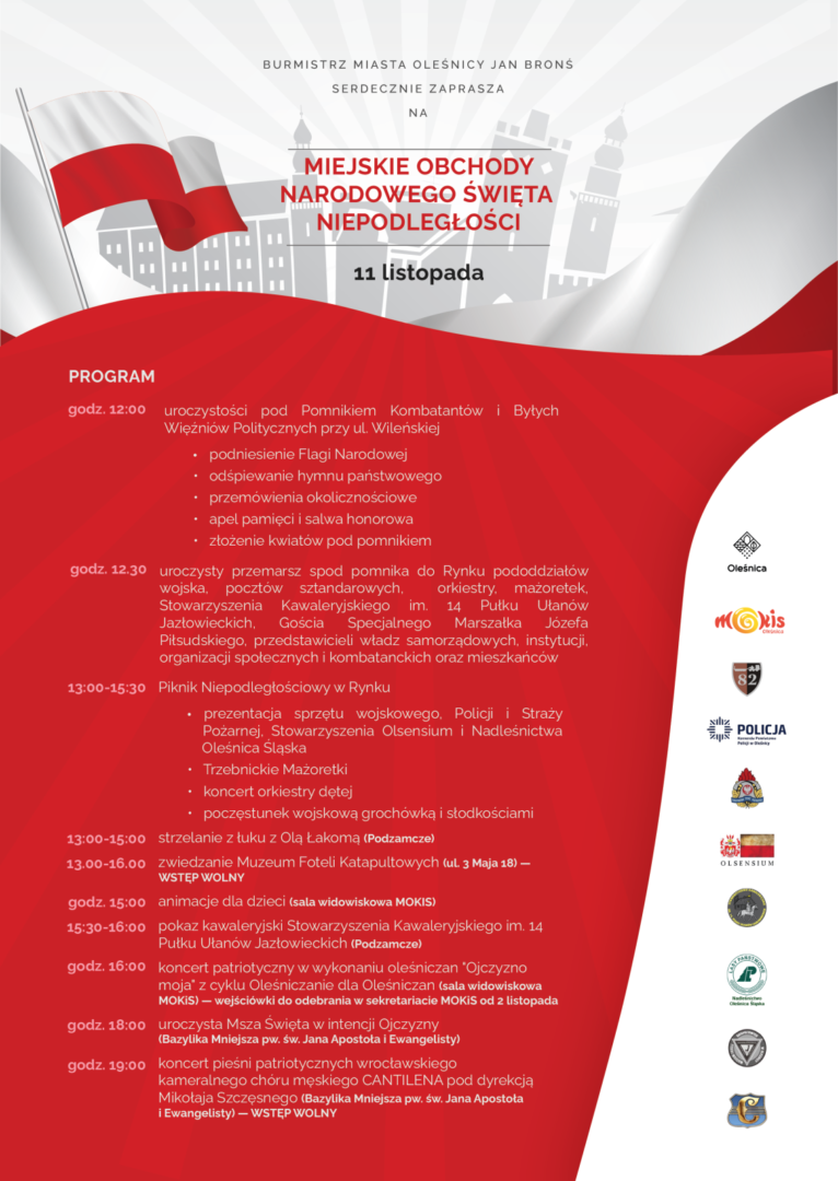 Burmistrz Jan Bronś zaprasza na Miejskie obchody Narodowego Święta Niepodległości.