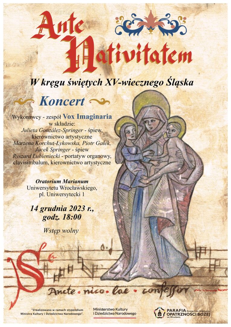 Koncert odbywa się w ramach projektu „Wizje świętych w religijnym repertuarze muzycznym średniowiecznego Śląska”, realizowanego w ramach stypendium artystycznego Ministerstwa Kultury i Dziedzictwa Narodowego otrzymanego przez Julietę González-Springer.