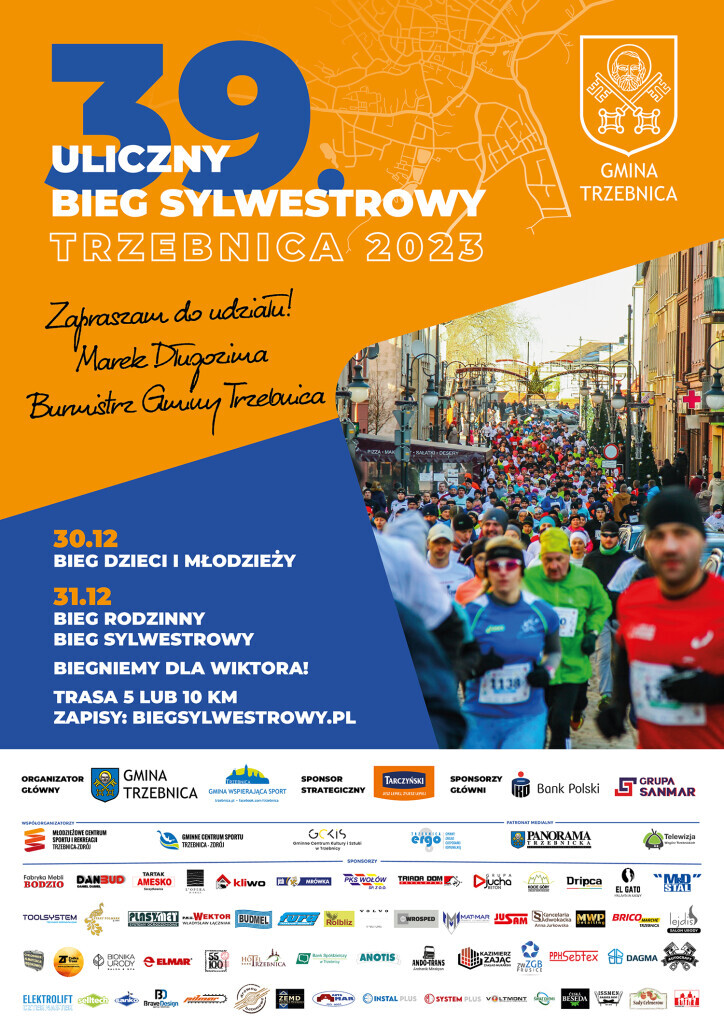 Przed nami 39. edycja Ulicznego Biegu Sylwestrowego, czyli jednego z największych sportowych wydarzeń organizowanych przez Gminę Trzebnica. Piękna, wymagająca i satysfakcjonująca trasa w tym roku po raz pierwszy z wyborem dystansu – 5 km lub 10 km.