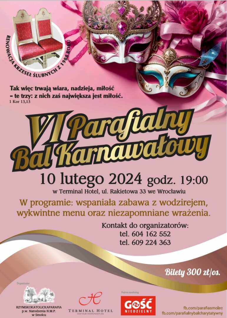 W dzisiejszej audycji zabierzemy Was do podwrocławskiego Smolca, tam na początku lutego, a dokładniej 10.02.2024 Parafianie będą bawić się wspólnie na Parafialnym Balu Karnawałowym.