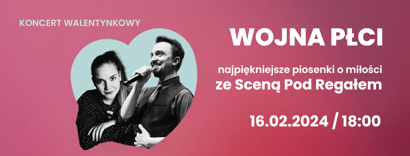 Centrum Kultury Agora oraz Scena pod Regalem zapraszają na muzyczną ucztę z okazji zbliżających się Walentynek koncert „Wojna Płci”. Wykonując najpiękniejsze utwory polskiej estrady, muzycy będą odpowiadać na odwieczne, trudne pytania dotyczące damsko-męskich relacji. Wydarzenie odbędzie się 16 lutego o godz. 18.