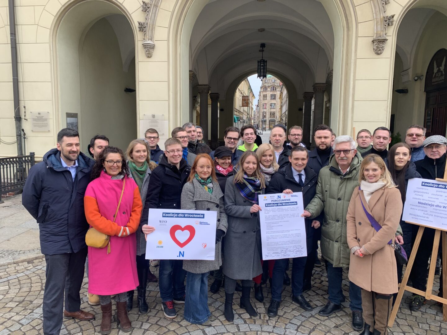 „Koalicję dla Wrocławia” utworzyli przed paroma tygodniami przedstawiciele Platformy Obywatelskiej, Zielonych, ruchów miejskich i Wrocławskiego Forum Osiedlowego. Łączy ich m.in. krytyka działań podejmowanych przez obecnego prezydenta Wrocławia.