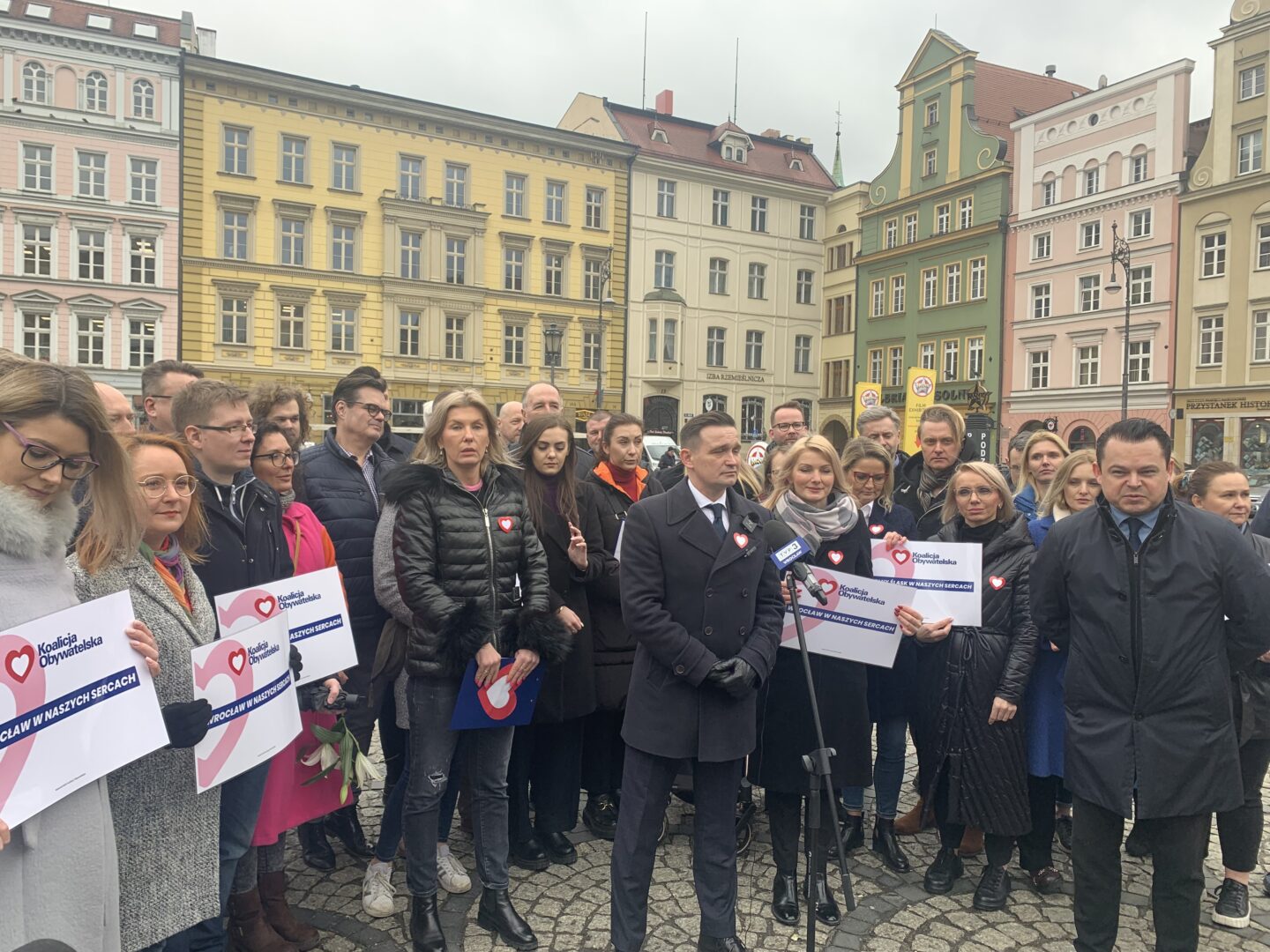 Koalicja Obywatelska (PO, Zieloni, Nowoczesna, aktywiści) wystartowała z kampanią samorządową. Na listach kandydatów do Rady Miejskiej Wrocławia i Sejmiku Województwa są wieloletni samorządowcy oraz polityczni debiutanci. Wciąż nie ogłoszono kandydata Platformy Obywatelskiej na prezydenta Wrocławia.