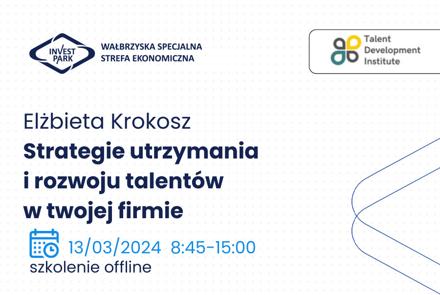 Wałbrzyska Specjalna Strefa Ekonomiczna „INVEST-PARK” wraz z Talent Development Institute ma przyjemność zaprosić na szkolenie stacjonarne „Strategie Utrzymania i Rozwoju Talentów w Twojej firmie”, podczas którego: