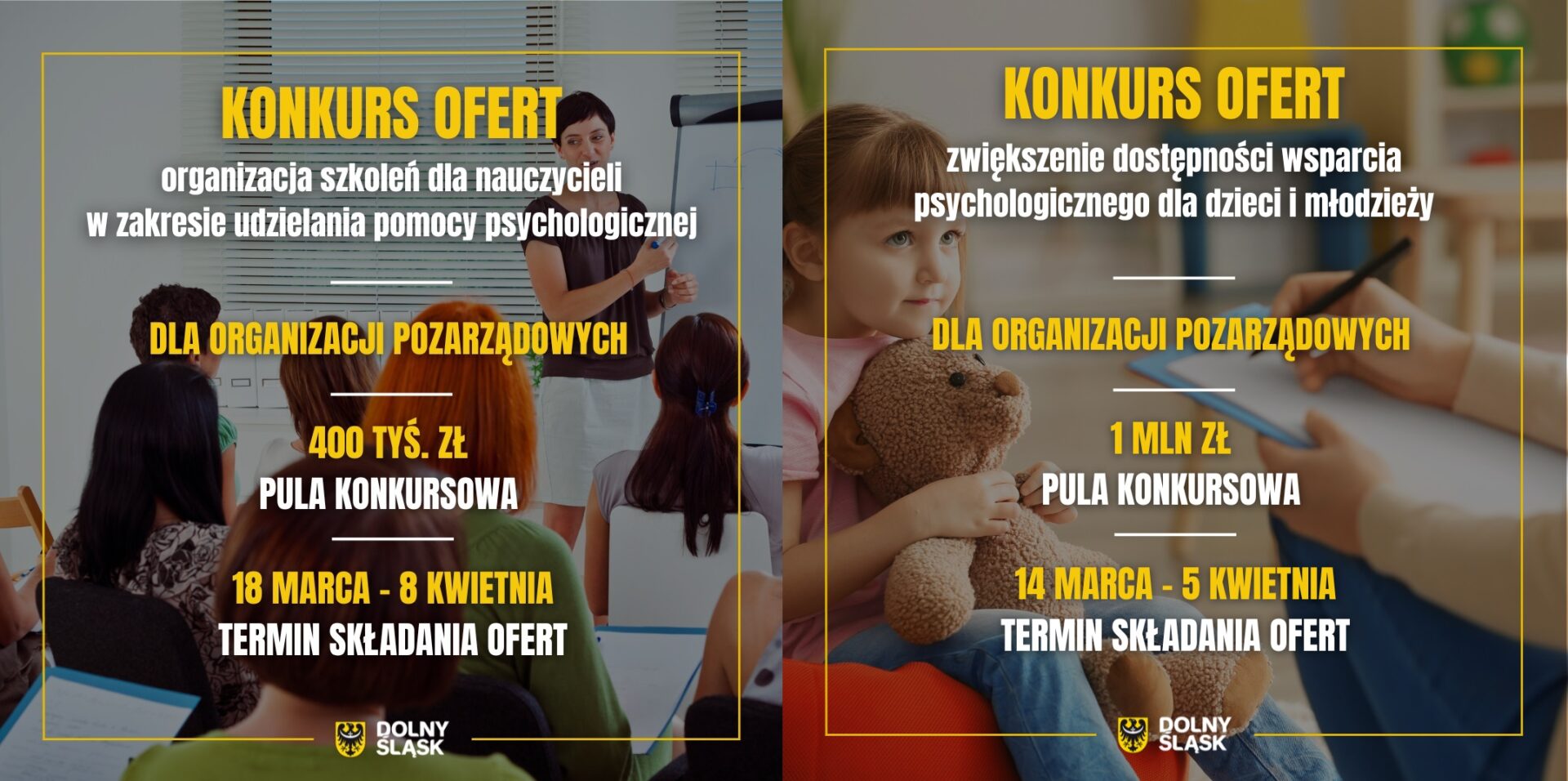 Samorząd województwa dolnośląskiego ogłasza dwa konkursy ofert dla organizacji pozarządowych, których celem jest zwiększenie dostępności wsparcia psychologicznego dla dzieci i młodzieży.