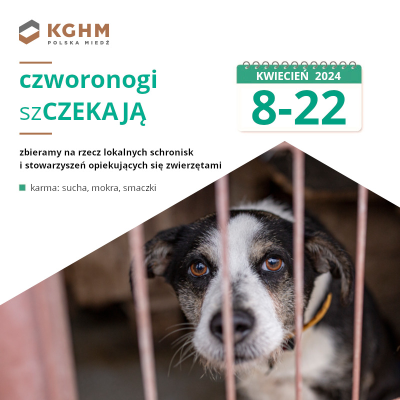 Przynieś i pomóż nakarmić bezdomne zwierzaki! W oddziałach KGHM trwa zbiórka karmy dla czworonożnych podopiecznych schronisk w Zagłębiu Miedziowym. CZWORONOGI szCZEKAJĄ na wsparcie od wolontariuszy, ale nie tylko. Specjalne pojemniki na dary czekają na zapełnienie przez dwa tygodnie, czyli do 22 kwietnia.