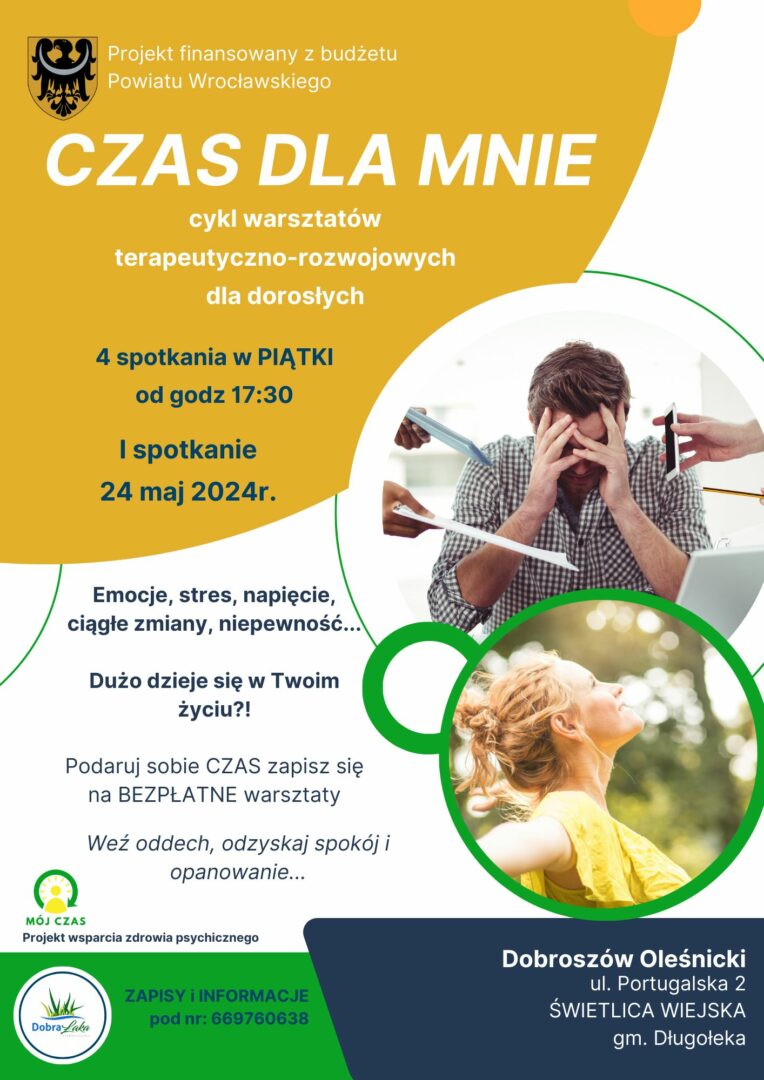 - „Czas dla mnie” (4 spotkania): I spotkanie 24.05.202024 r. – Dobroszów Oleśnicki, ul. Portugalska 2 (gm. Długołęka)