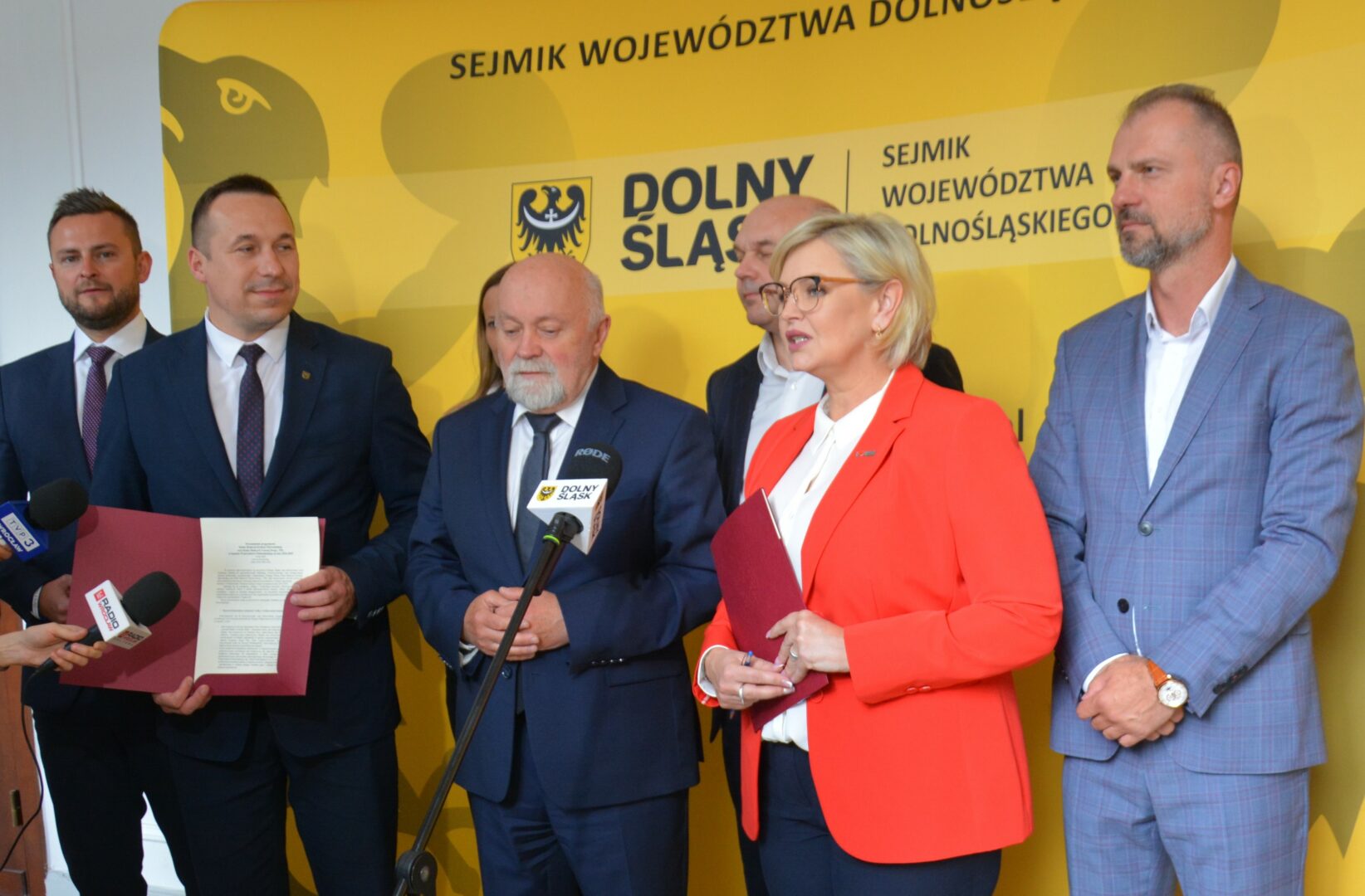 Dziś, podczas konferencji prasowej poprzedzającej sesję Sejmiku Województwa Dolnośląskiego, marszałek Paweł Gancarz wraz z zarządem województwa oraz przedstawicielami sejmikowych klubów radnych zaprezentowali wspólną umowę koalicyjną. Dokument określa najważniejsze kierunki współpracy na najbliższe 5 lat.