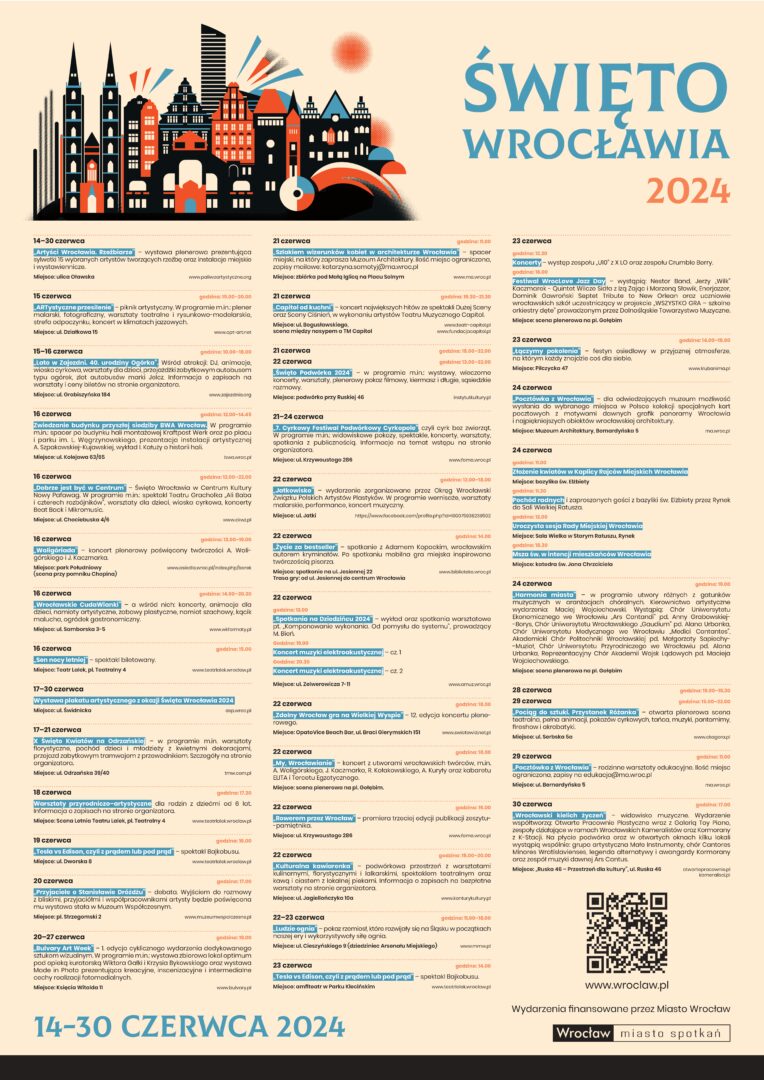 Co jeszcze w programie? Ten jest bardzo obszerny, a każde z wydarzeń starannie przygotowane przez organizatorów. Pierwsze atrakcje ruszają już od soboty 15 czerwca. Dokładny harmonogram można sprawdzić w załączniku, a także na stronie Wroclaw.pl. Szczegóły najbliższych wydarzeń są dostępne poniżej:
