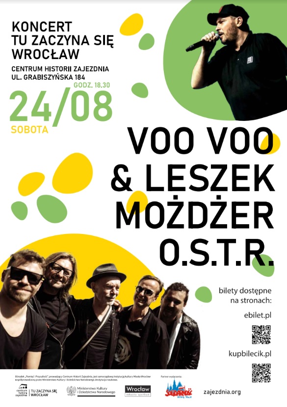 Voo Voo & Leszek Możdżer oraz O.S.T.R. na koniec wakacji w Centrum Historii Zajezdnia – tych artystów nie trzeba przedstawiać. Na wyjątkowym koncercie „Tu zaczyna się Wrocław” wystąpią razem Voo Voo & Leszek Możdżer z premierowym materiałem oraz O.S.T.R., prezentując przekrój przez całą swoją twórczość. Zakończenie wakacji we Wrocławiu szykuje się więc z bardzo mocnym akcentem muzycznym. Koncert odbędzie się w sobotę 24 sierpnia na placu przed Centrum Historii Zajezdnia.