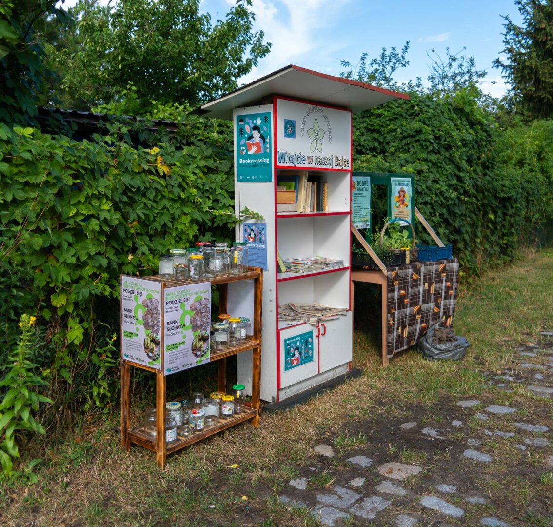 Regał i całe jego wyposażenie, w tym skrzynki, które służą do magazynowania, jak i same słoiki pochodzą z odzysku. Wcześniej były już przez kogoś wykorzystane i, zamiast trafić do śmieci, znalazły nowe zastosowanie. – Nie marnujmy. Niepotrzebne słoiki przekażmy osobom, które zrobią z nich użytek. Przetwarzajmy warzywa i owoce, chroniąc je przed zepsuciem. Wekujmy żywność zamiast wyrzucać. Taki drugi obieg przedmiotów i rozsądne gospodarowanie zasobami jest ekonomiczne i ekologiczne – mówi Aleksandra Palus, rzecznik prasowy Ekosystemu.