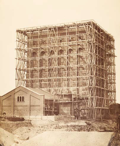 Budowa Wieży Ciśnień Na Grobli – widok od wschodu. Stan z 1869 r., źródło Archiwum MPWiK