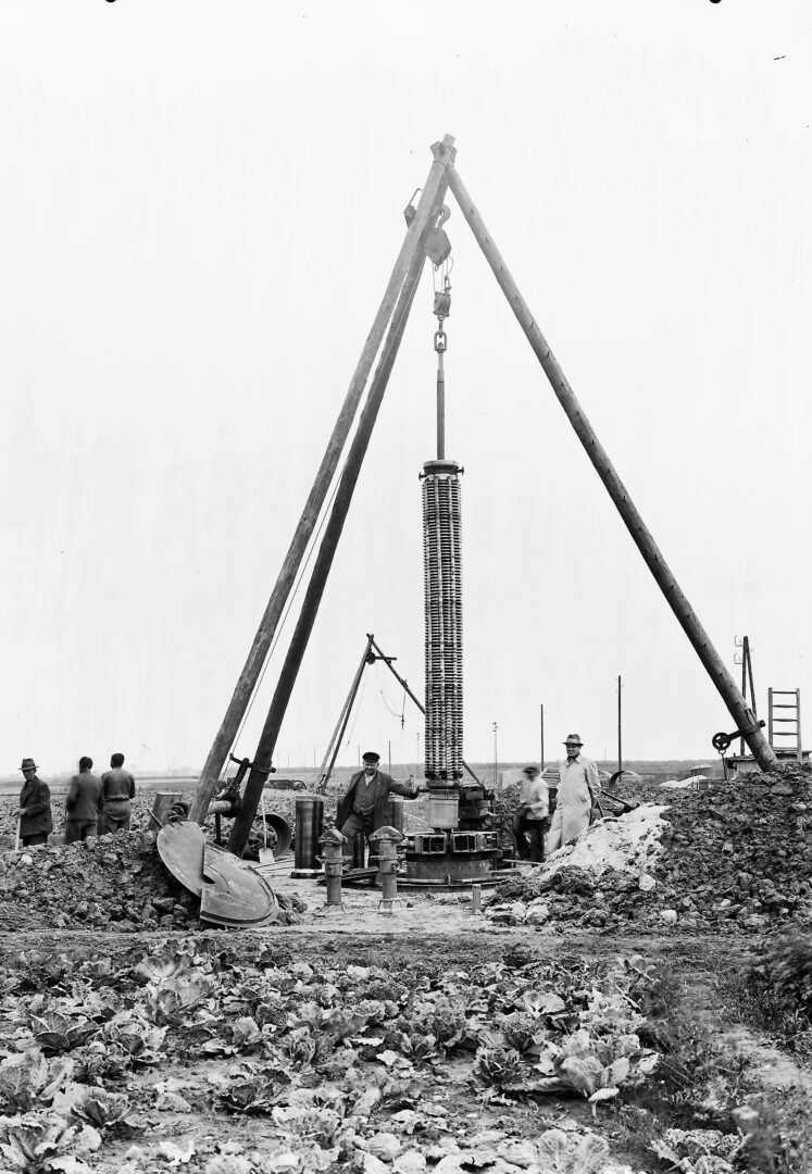 Wiercenie studni na terenach wodonośnych, lata 20-30. XX w., źródło Archiwum MPWiK