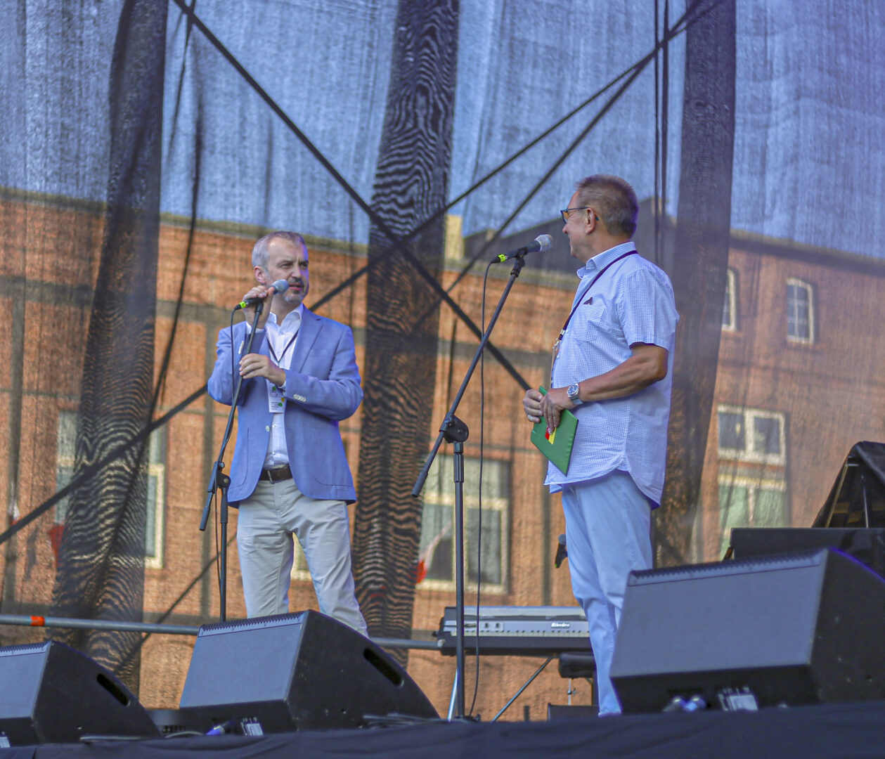 Po kilkunastominutowej przerwie na zmianę instrumentów, zaprezentowali się wszystkim Wojciech Waglewski i Leszek Możdżer z zespołem. Tych mistrzów nie trzeba przedstawiać. Jazzowa nutka z rockowym pazurem okazała się ucztą i dla ducha, i dla ucha. Idealnie zgrani z ze świetnie brzmiącymi grupą wokalną i sekcją rytmiczną, artyści zaprezentowała program, który zapewne dla wszystkich słuchaczy był nowością.