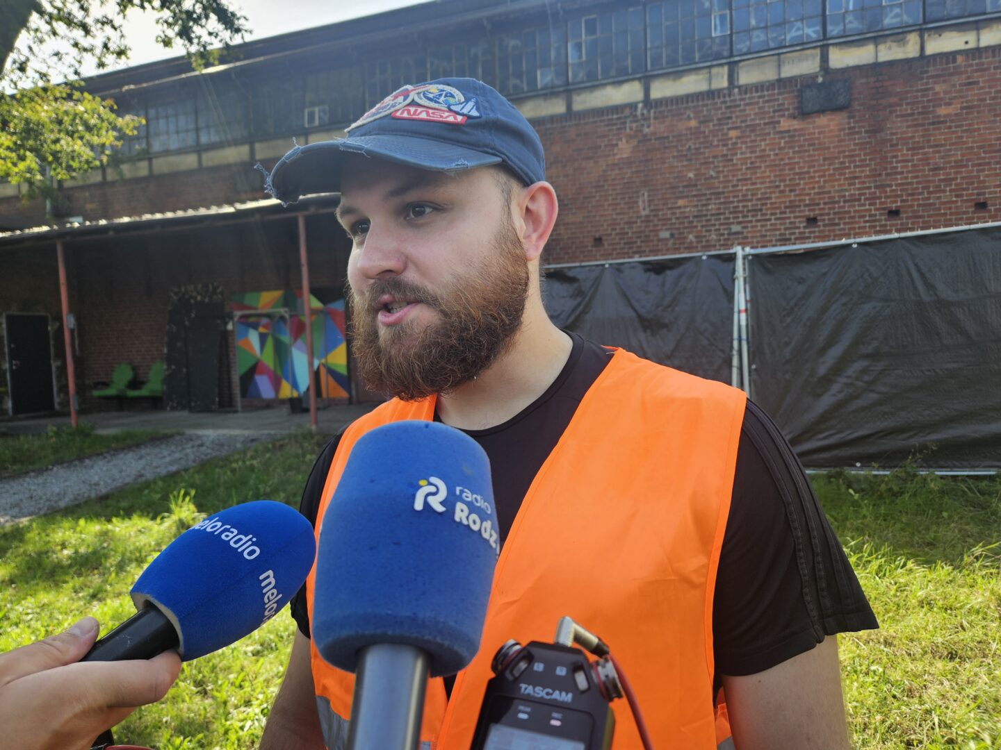 – Przyszedłem do Czasoprzestrzeni, żeby pomóc ogarnąć pakowanie piasku – mówi Michał Dębny, wolontariusz.